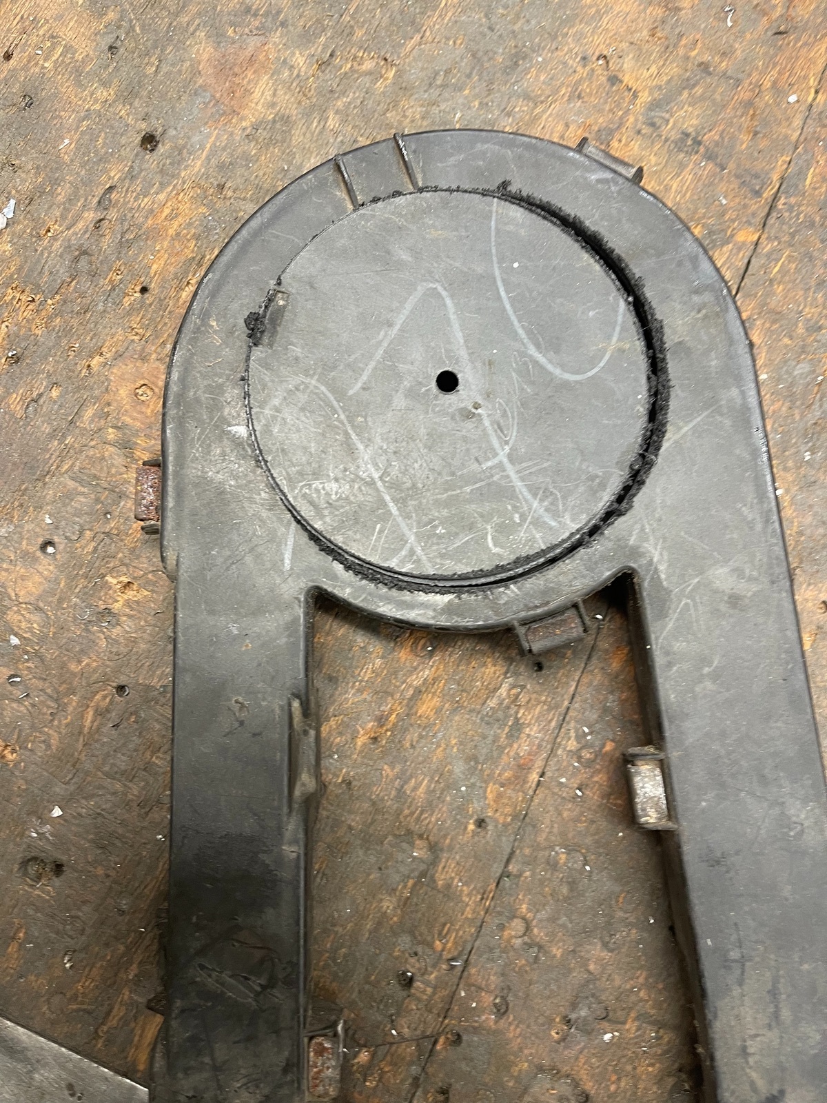 Loch für riemenrad an der Zahnriemen Abdeckung ausgemessen