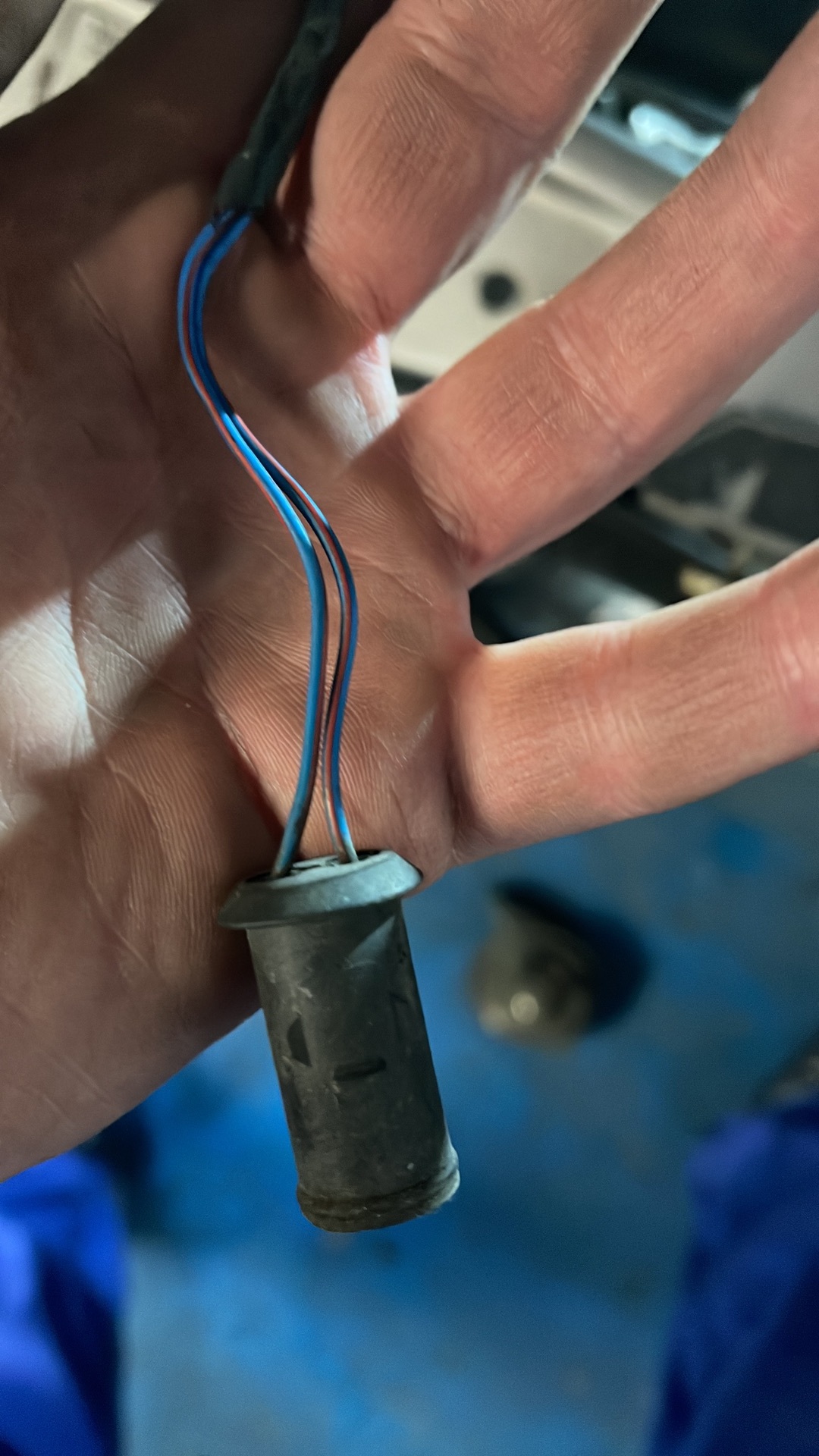 Der Stecker braun mit den Kabelfarben rot/blau ist für die Ölfüllmenge, entweder Sensor im Messstab oder Pendelschwimmer in der Ölwanne.