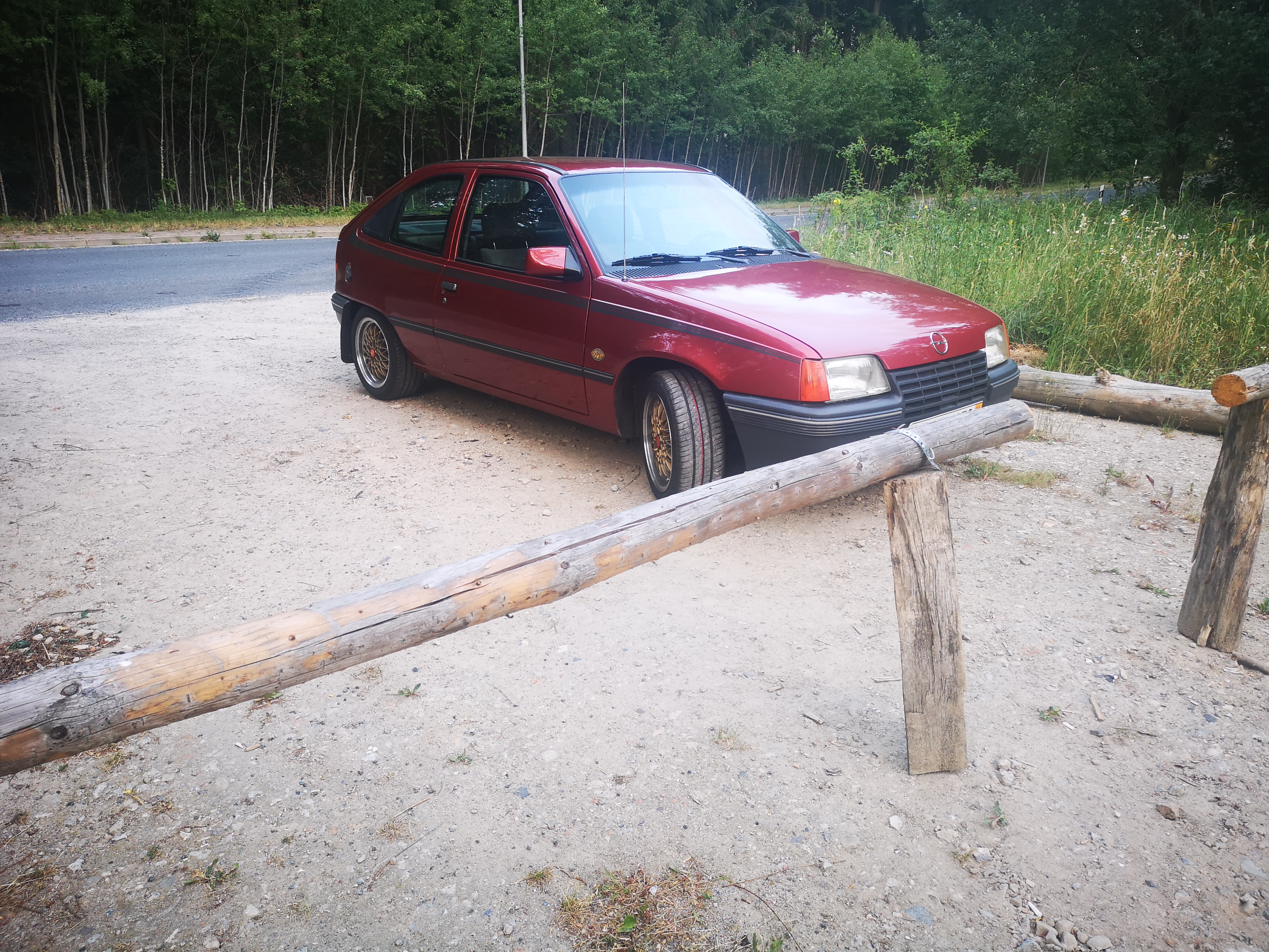 Hatte ja im März mein 87er Jubilee 125jahre Opel mit E18NV gefunden und sofort zugeschlagen als ich den mir angeschaut hatte. Nach der Überführung erstmal geschaut was gemacht werden muss und es war gar nicht soviel. Unterboden hatte Flugrost, welchen ich aber mit der Drahtbürste los wurde und da ich gern alles ordentlich mache, wurde der Motor zerlegt und neu abgedichtet, jetzt schnurrt er wieder. Dann kam schon die Optikfrage, die Irmscher Alus gefielen mir nicht und ich besorgte mir alte Exip, dazu noch Spritzlappen