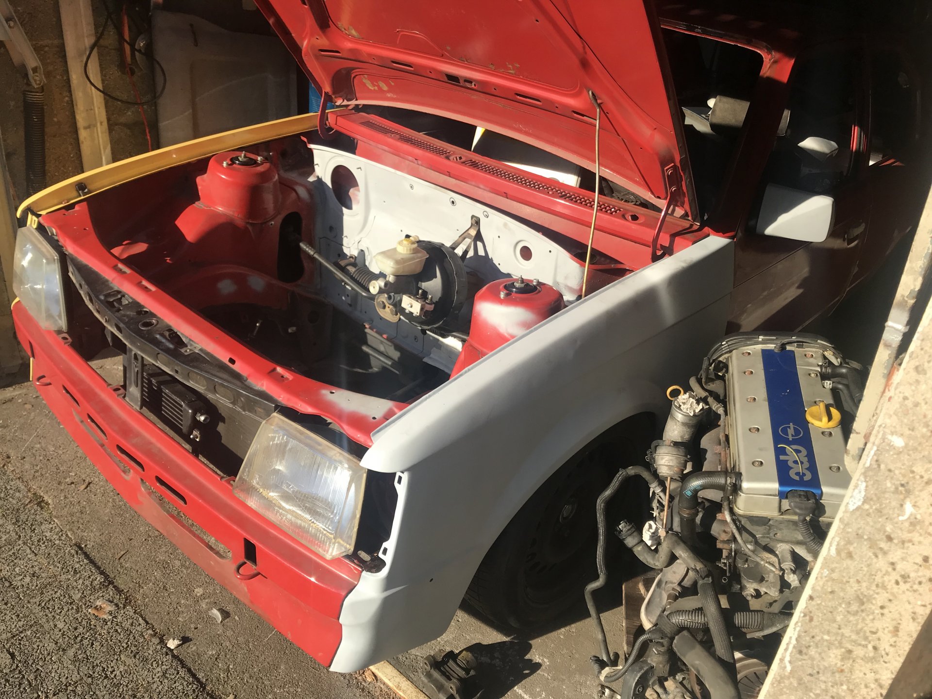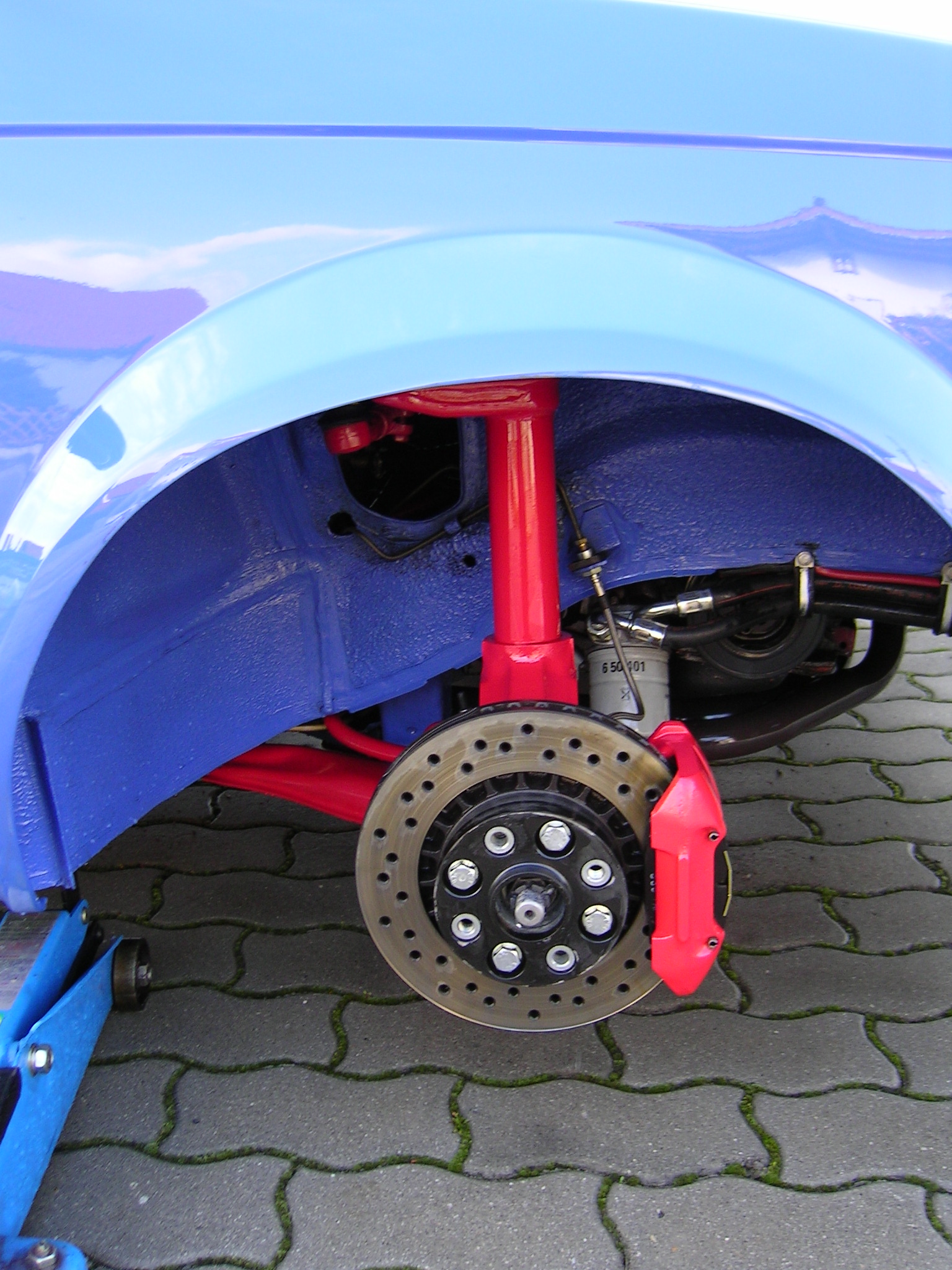 Bild von meinem GTE :Die Stabiaufnahmen sind selbergebaut, weil nix ausm Opelregal richtig gepaßt hat. Die Querlenkerschraube ist nicht verkehrt rum drin, da ist nur zum "grob zusammenstecken" eine Gewindestange drin. Wenn Alles paßt, kommt da die richtige Schraube rein.