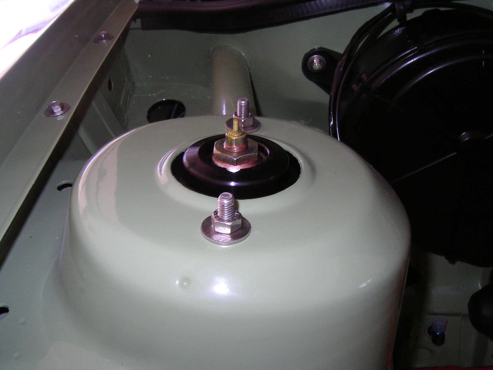 Uniball Domlager verbaut. Mit den Dinger kommt man verglichen zu D-Kadett Domlagern bzw. E30 Domlagern schon 35 mm tiefer. Platz zur Motorhaubeninnenseite hab ich noch über 1 cm.