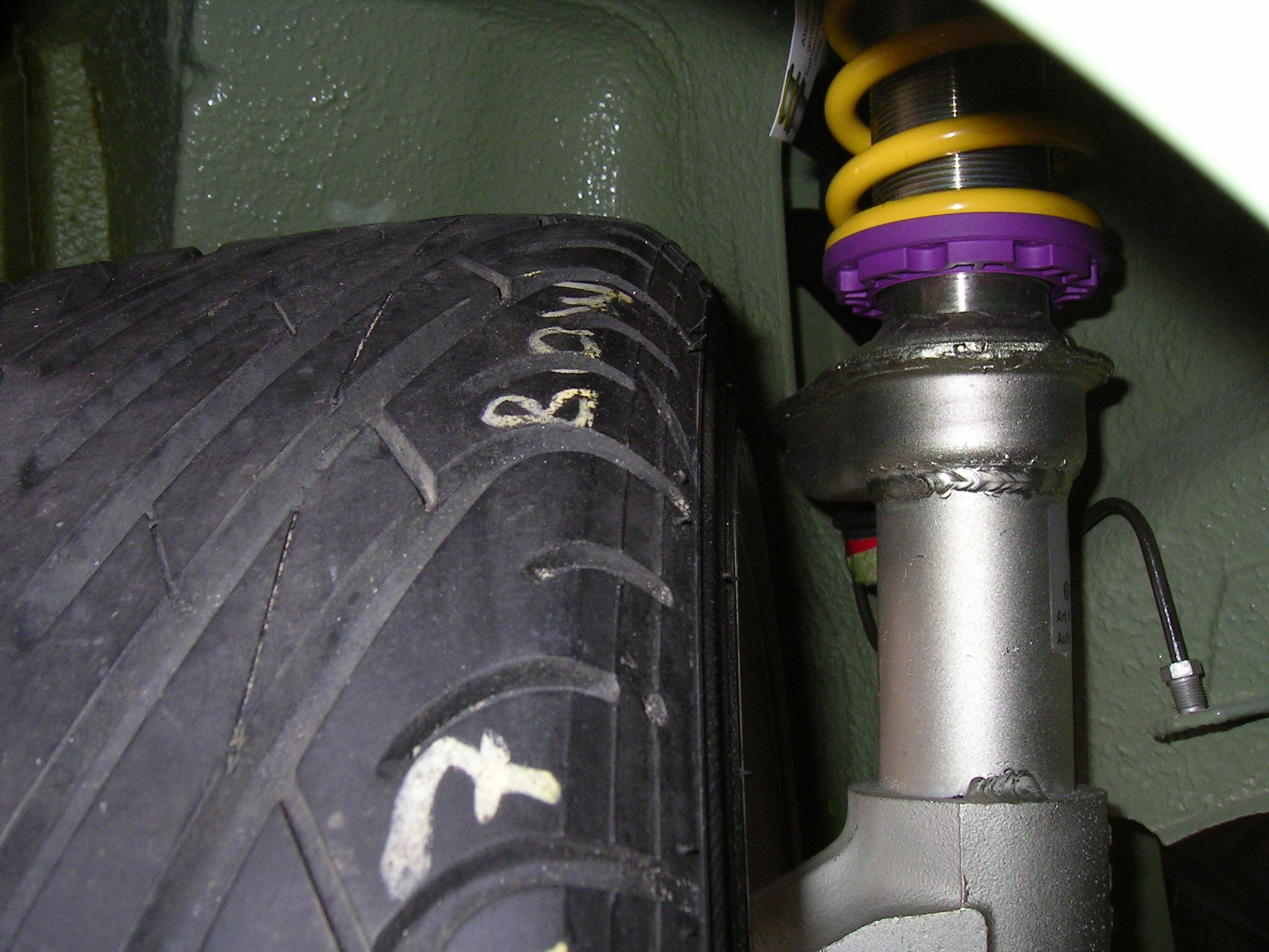 Bis jetzt war ich noch guter Dinge. Dann hab ich das gesehen. Lenkhebel - Reifen Abstand 5 mm.