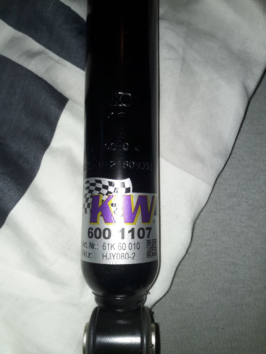 Hab auch das je Fahrwerk wie du auch hast nur habe ich keine hinteren Dämpfern mehr da sind andere drin und um bei kw neue zu bestellen wollen die eine Nummer die nur auf dem Dämpfer steht