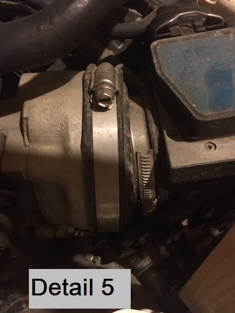 - Fehlendes Kleinteil (wer hat so was?)[/u]: Ein Gummischlauch zwischen LMM und Drosselklappe. Da gibt's einen schoenen kurzen den ich auf einem anderen C20XE habe, aber ich brauche Ersatz dafuer. Siehe "Detail 5". EDIT: Danke an Martin, das Teil ist bestellt. Die schicken sogar guenstig direkt nach USA. Erledigt.