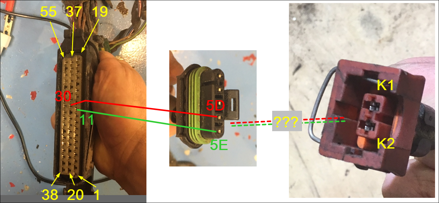 - Kabelbaum Frage 1: Siehe Bilder "Uebersicht 1/2". Gibt es eine Moeglichkeit den Kabelbaum zu identifizieren, von welchem Modell der stammt? Er muss nicht unbedingt zu meinem Steuergeraet "GY" passen, das laut diesem Link (click) von einem 92er Calibra stammt. Passt meine ganze Resteverwertung ueberhaupt zusammen?