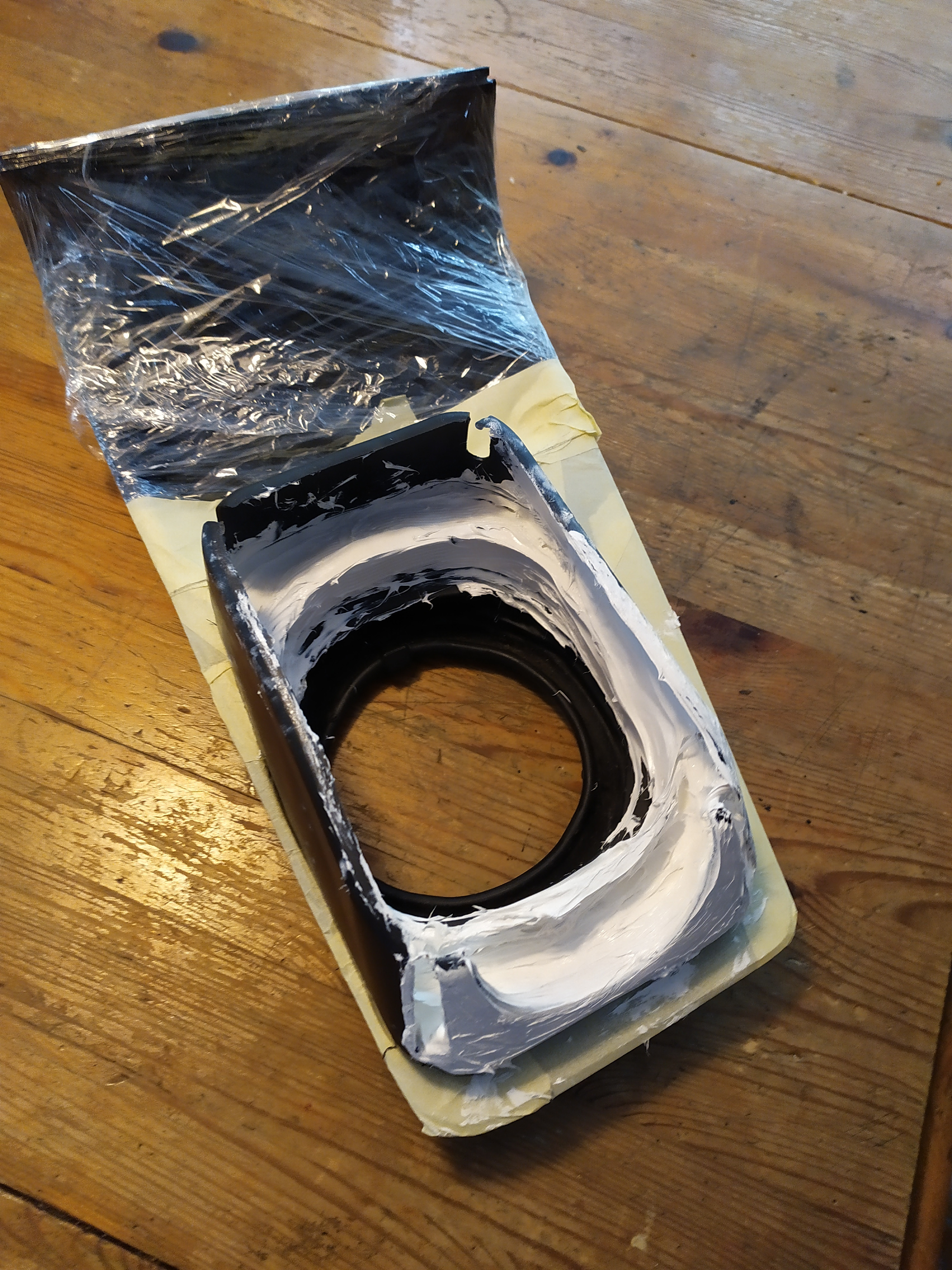 Ich habe den unteren Rest meines Gummisacks in die Mittelkonsole gemacht und mit Sikaflex einen, etwas mit dem Dremel bearbeiteten, Rahmen vom Faceliftmodell an den alten Rahmen geklebt: