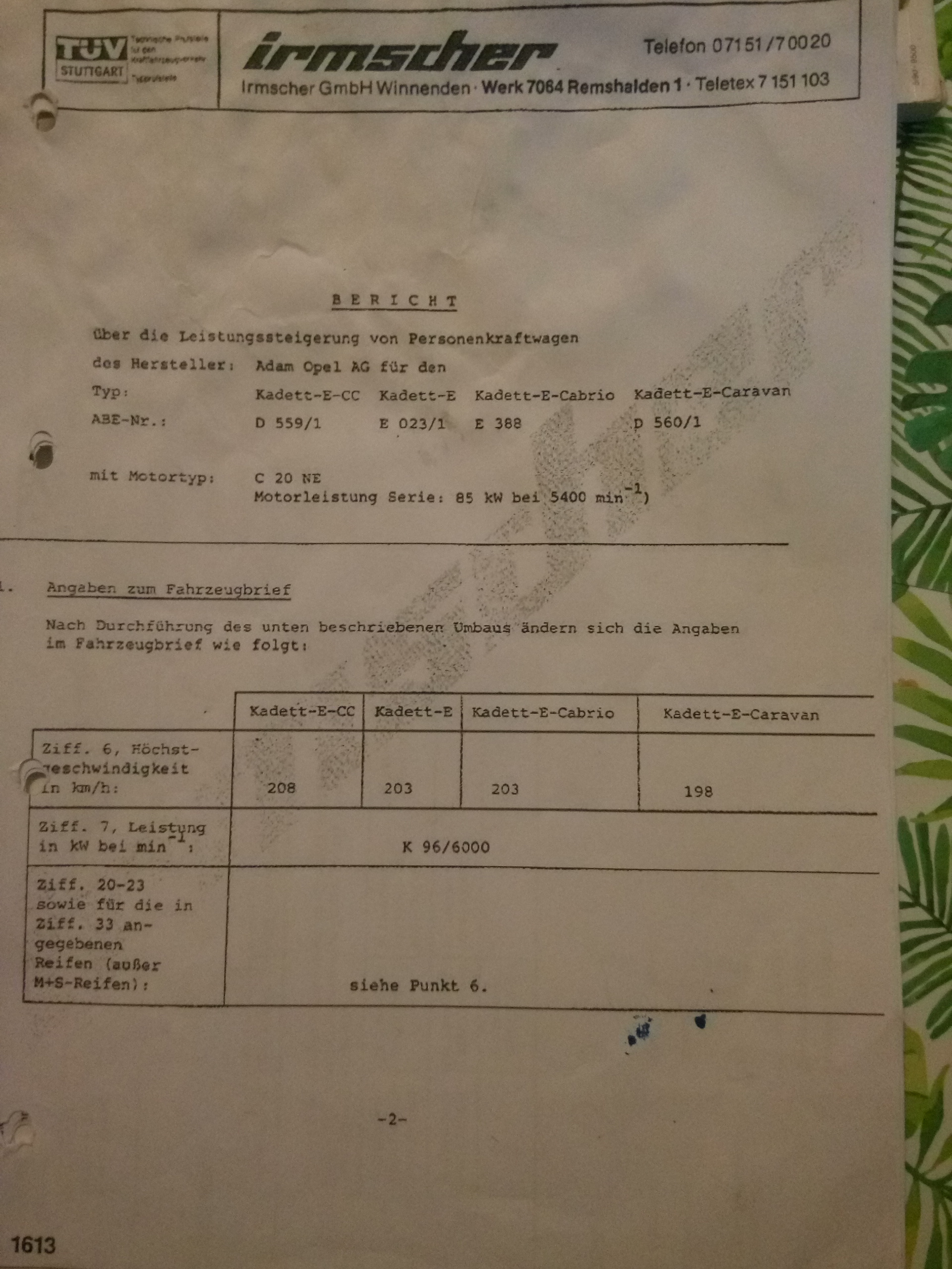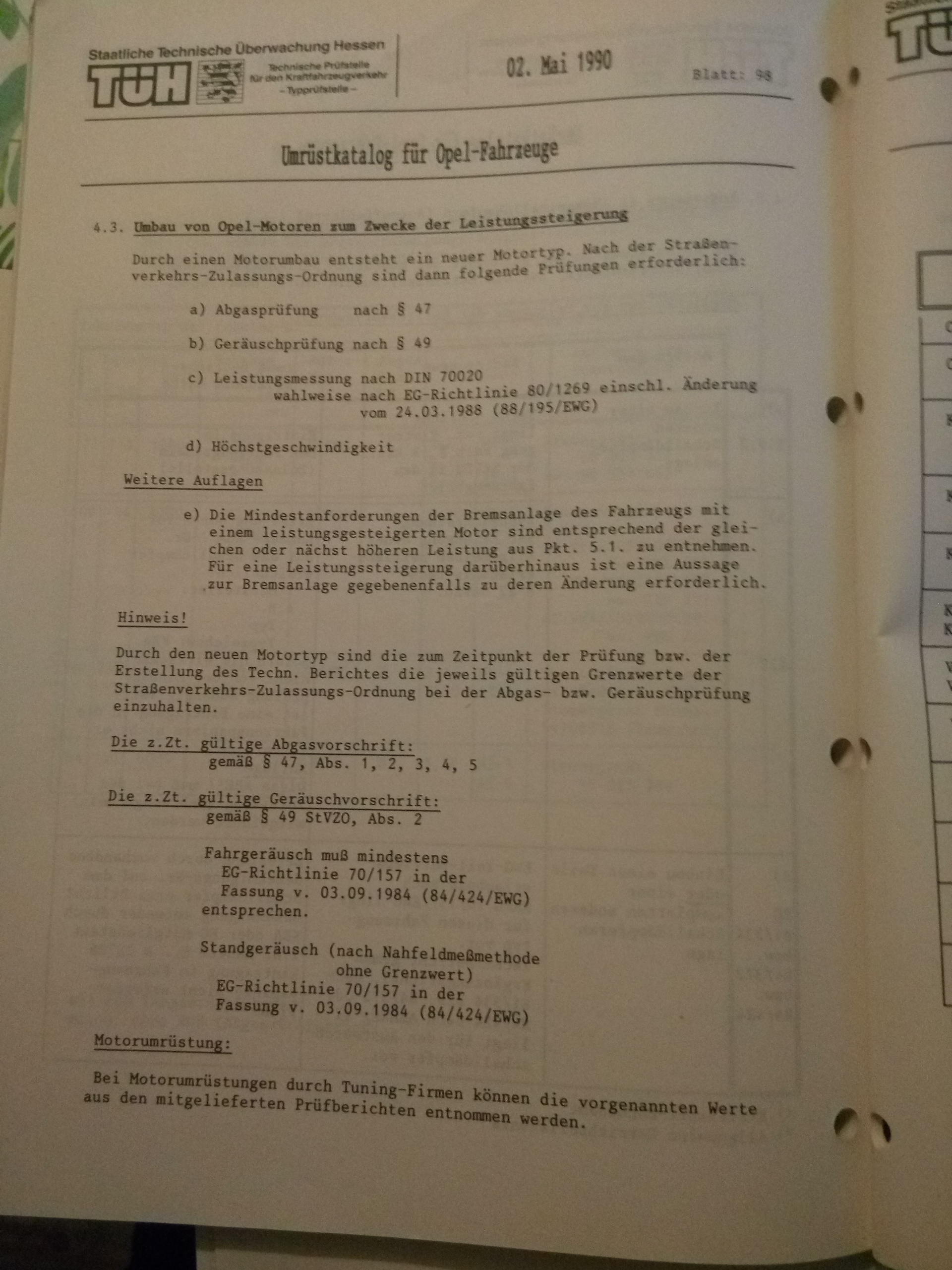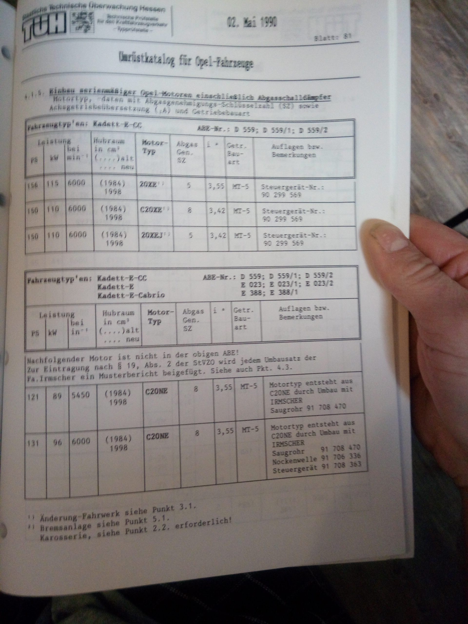 Heißt auf deutsch, für den c20xe in der Karosserie mit ABE Nummer E 388 gibt es kein Abgasgutachten.