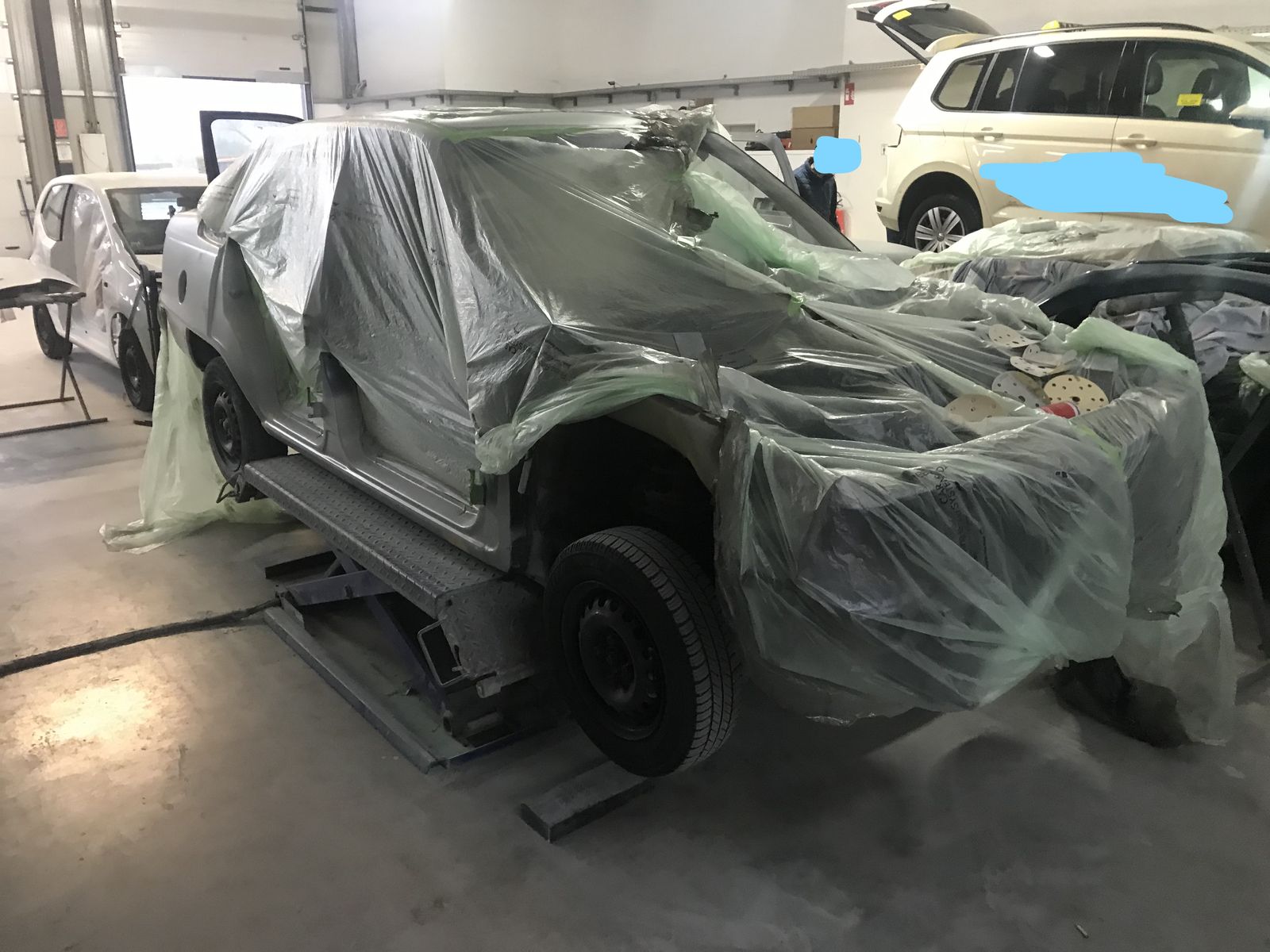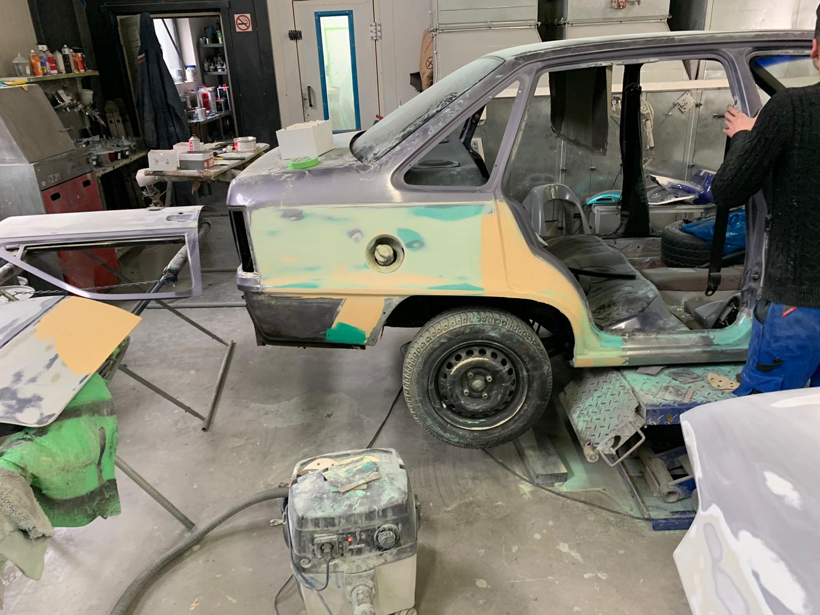 Los ging es mit schleifen und füllern (Es gibt mehr Bilder, aber da sind Mitarbeiter drauf zu sehen, daher habe ich sie weggelassen)