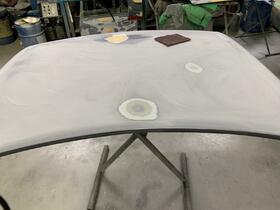 Los ging es mit schleifen und füllern (Es gibt mehr Bilder, aber da sind Mitarbeiter drauf zu sehen, daher habe ich sie weggelassen)