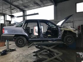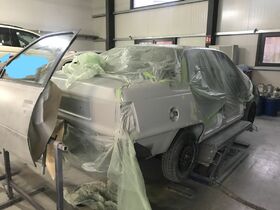 Der Kadett wurde dann Montags vom Altmeister zum Lackierer gebracht. Ich hatte dort mit dem Inhaber gesprochen, ob es okay sei, wenn ich zwischendurch für 2-5 Fotos mal reinschaue. Durfte ich - aber klare Ansage vom Chef: Wir sind hier gläsern. Jeder Kunde darf herkommen und sich ansehen, was wir hier machen. Aber bitte nicht stundenlang, bitte nicht die Mitarbeiter vollquasseln oder mit Fragen löchern, sonst schaffen wir unsere arbeit nicht. Wir sind täglich von 8-17 Uhr hier.