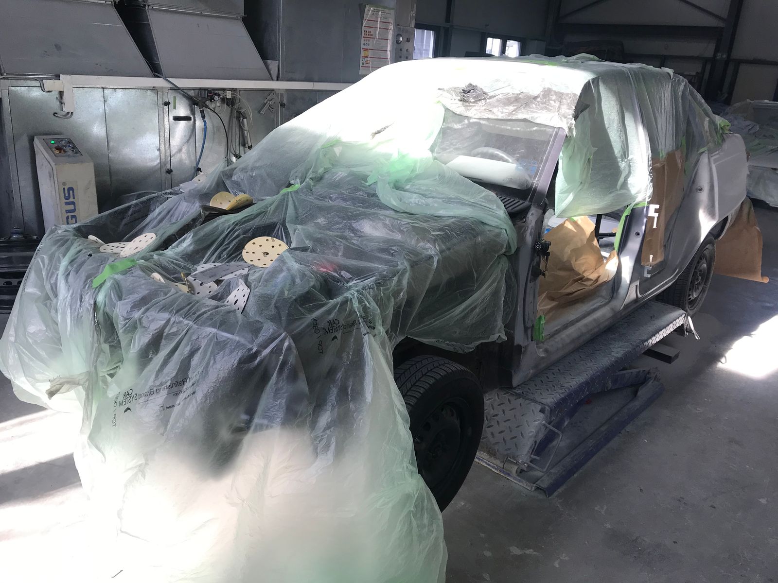 Los ging es mit schleifen und füllern (Es gibt mehr Bilder, aber da sind Mitarbeiter drauf zu sehen, daher habe ich sie weggelassen)