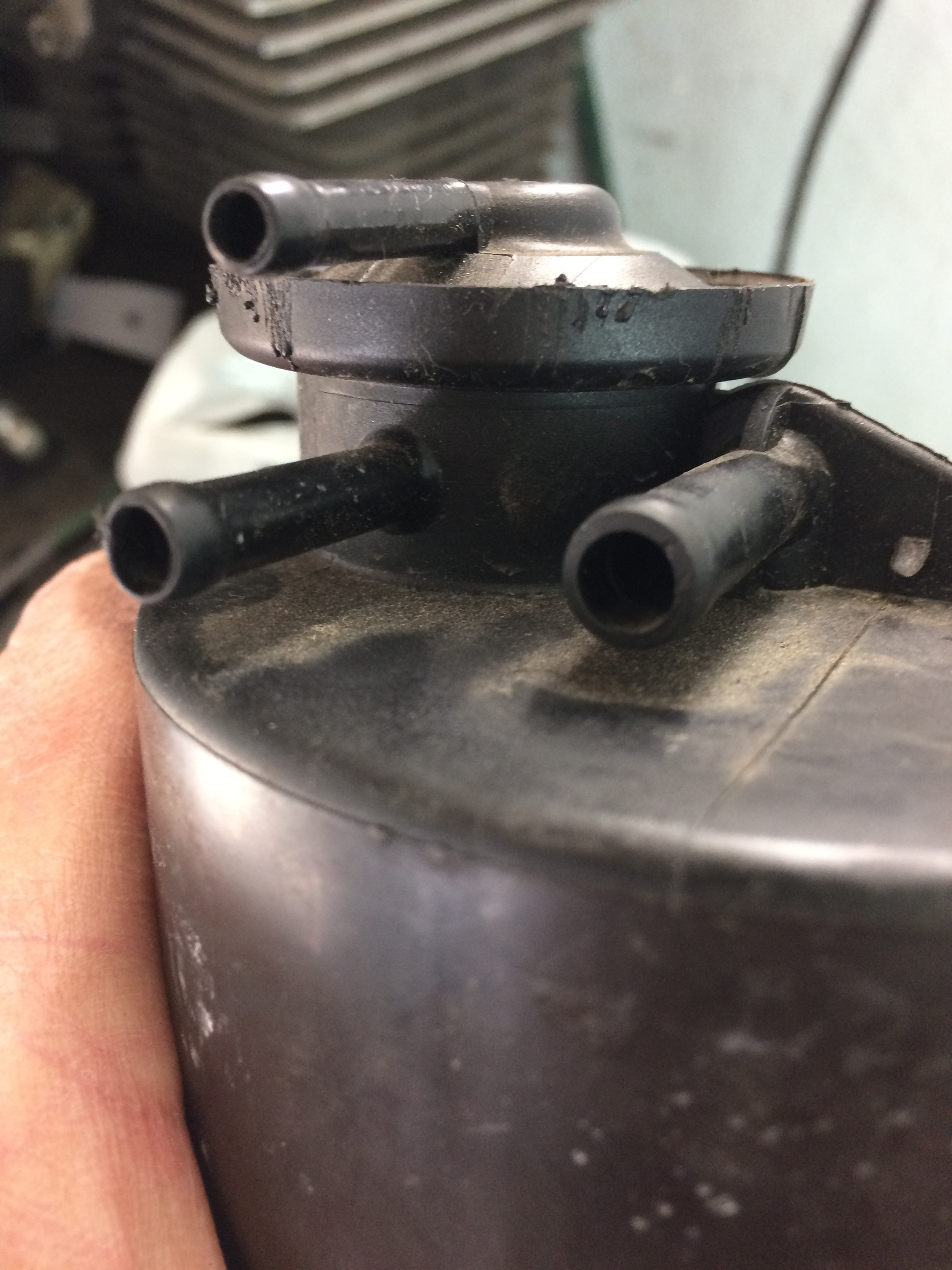 welcher Unterdruckschlauch wird wo angeschlossen und wie wird der Aktivkohlebehälter verrohrt? Oben drei Anschlüsse und unten der an den Tank führt.