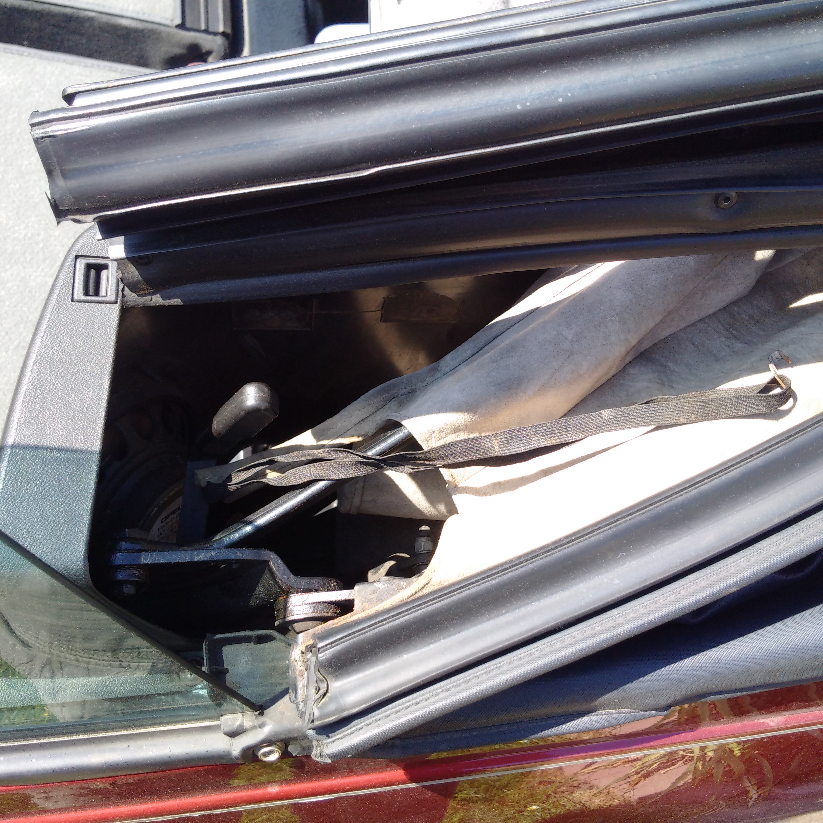 Ich komme leider mit meinem Faltdach nicht weiter... Ich möchte die Gummibänder unten im Bereich der Hecklautspreche wieder einhängen... Der Vorbesitzer hat diese leider nur um die Hebel der Verriegelung gewickelt... Nur finde ich leider nicht wo diese im Original eingehängt werden. Im Handbuch "Innenbespannung Faltdach" steht lieder nur das sie in der Seitenwand eingehängt sind, leider ohne Abbildung...