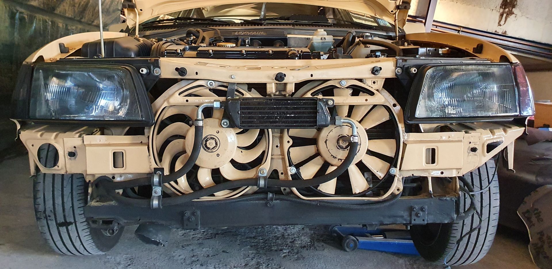 Die Brille hab ich bei meinem Kadett auch verbaut. In erster Linie war die Idee den bzw. die Lüfter VOR den Kühler zu bekommen und den Kühler unter den Schlossträger das man einen grösseren Turbo fahren kann. Aber... dann bekam er doch keinen Turbo. Fahre aber immer noch so auch mit "nur" XE :D PS: Tolle Arbeit die du da machst :thumbup: