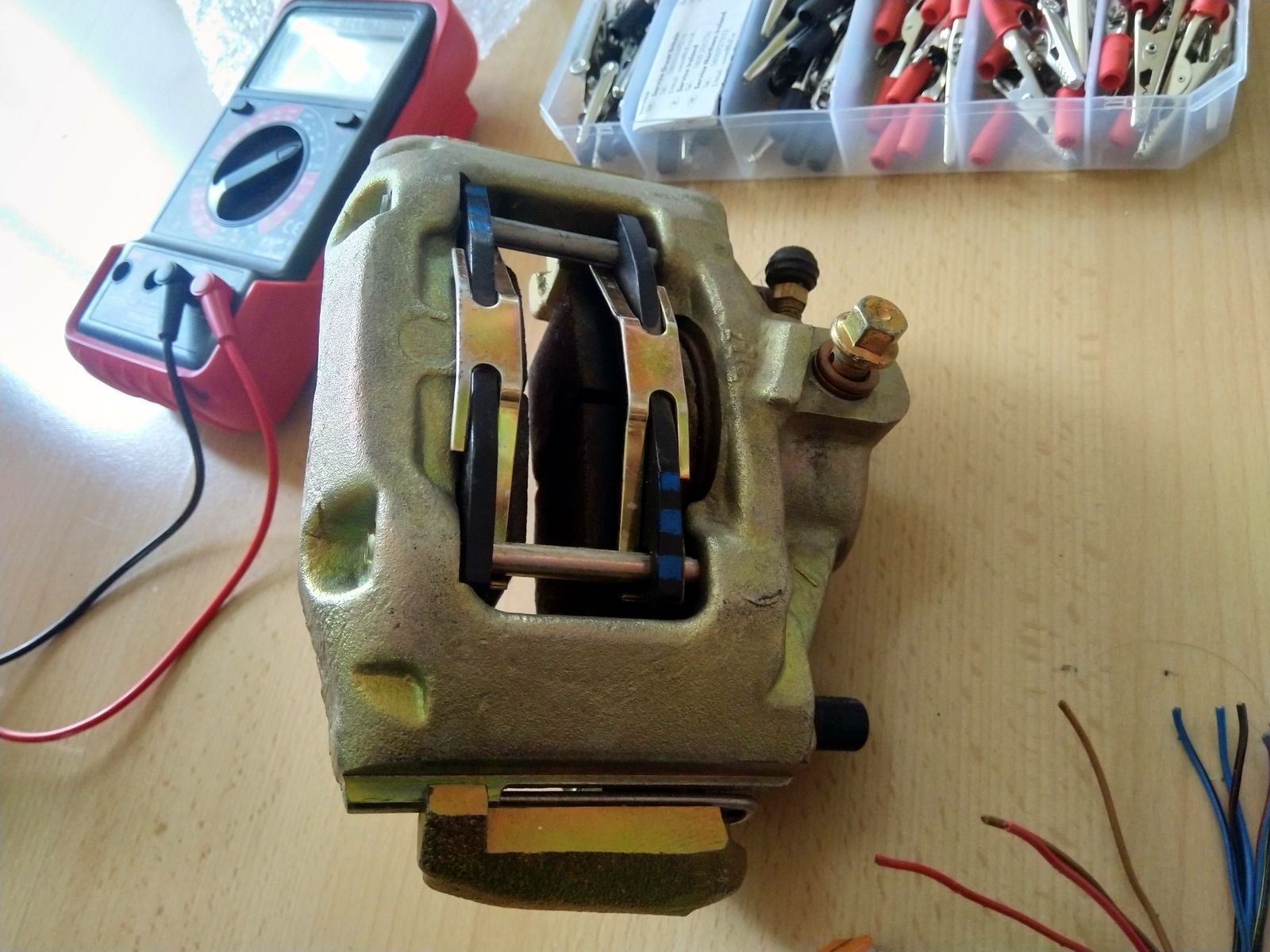 Da drin enthalten zwei schöne NEUE ATE Bremssättel für die massive Scheibe, also auf Wiedersehen delco Dreck!