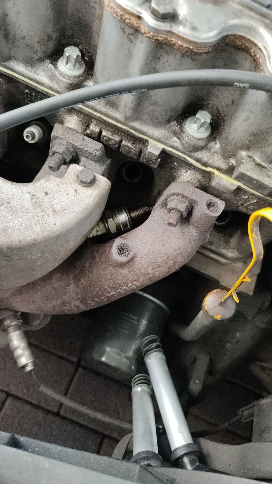 Die Zündkerze des 3. Zylinders war der Meinung, aus dem Kerzenschlüssel zu rutschen und lag dann zwischen den heißen Krümmerrohren.