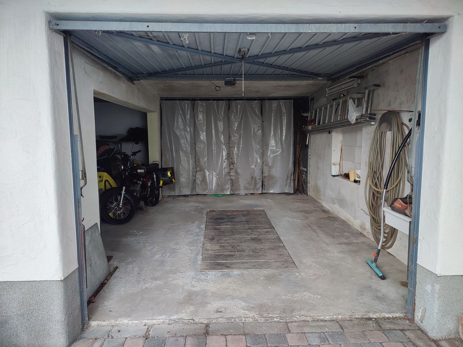 Die linke Garage wäre für dieses Jahr zumindest Teilweise nutzbar, diese gehört meinem Bruder und aktuell steht nur Krempel drin. Daher schonmal gleich an die "beengten" Verhältnisse gewöhnen.