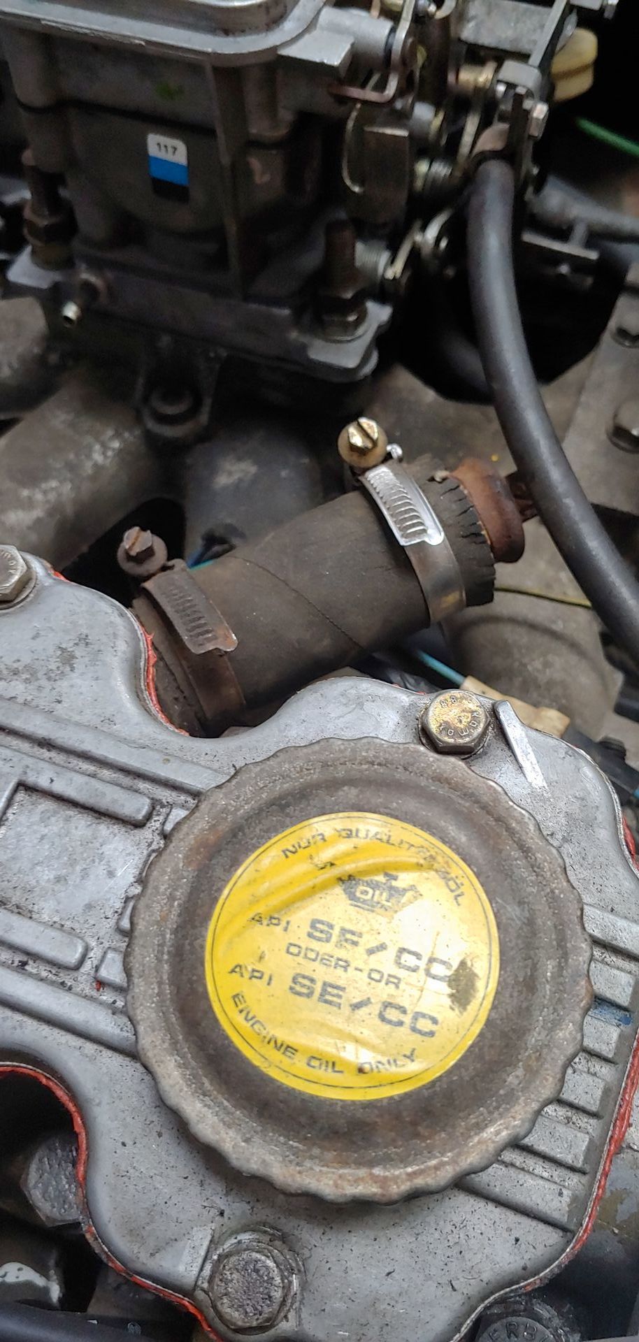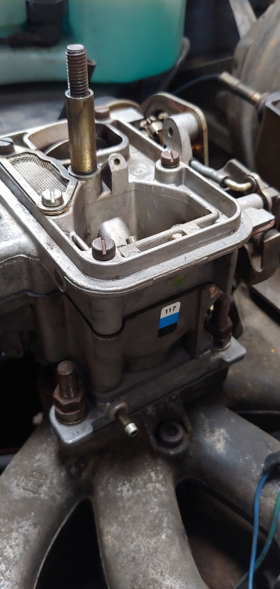 Vergaser (Choke, nicht Startautomatik) hab ich komplett zerlegt, Schallbad, Drosselklappenwelle arbeitet sich wohl früher oder später ins Gehäuse, bei diesem (noch) nicht, neue Dichtungen, etc usw.