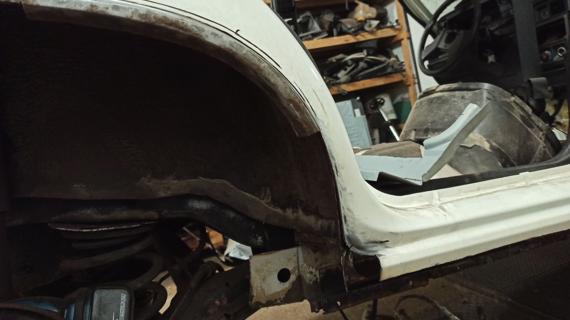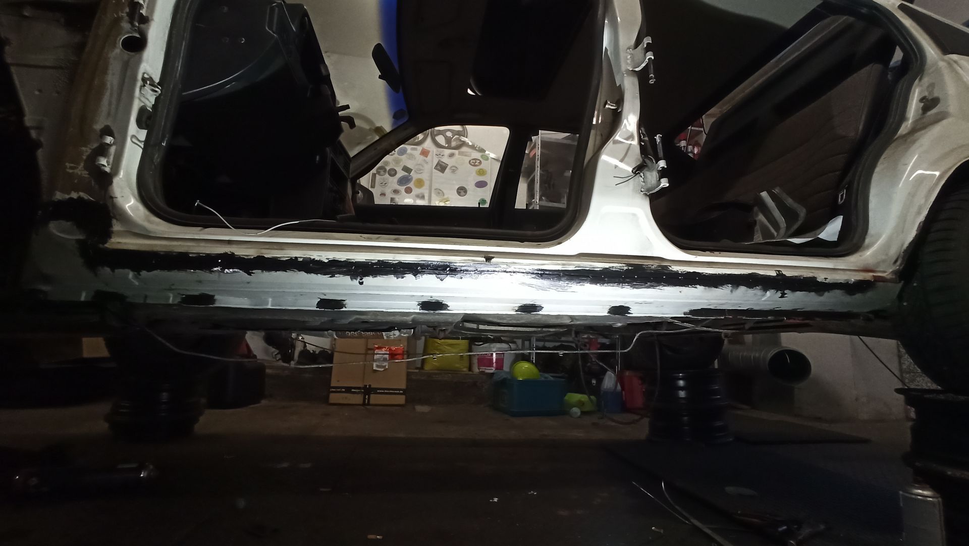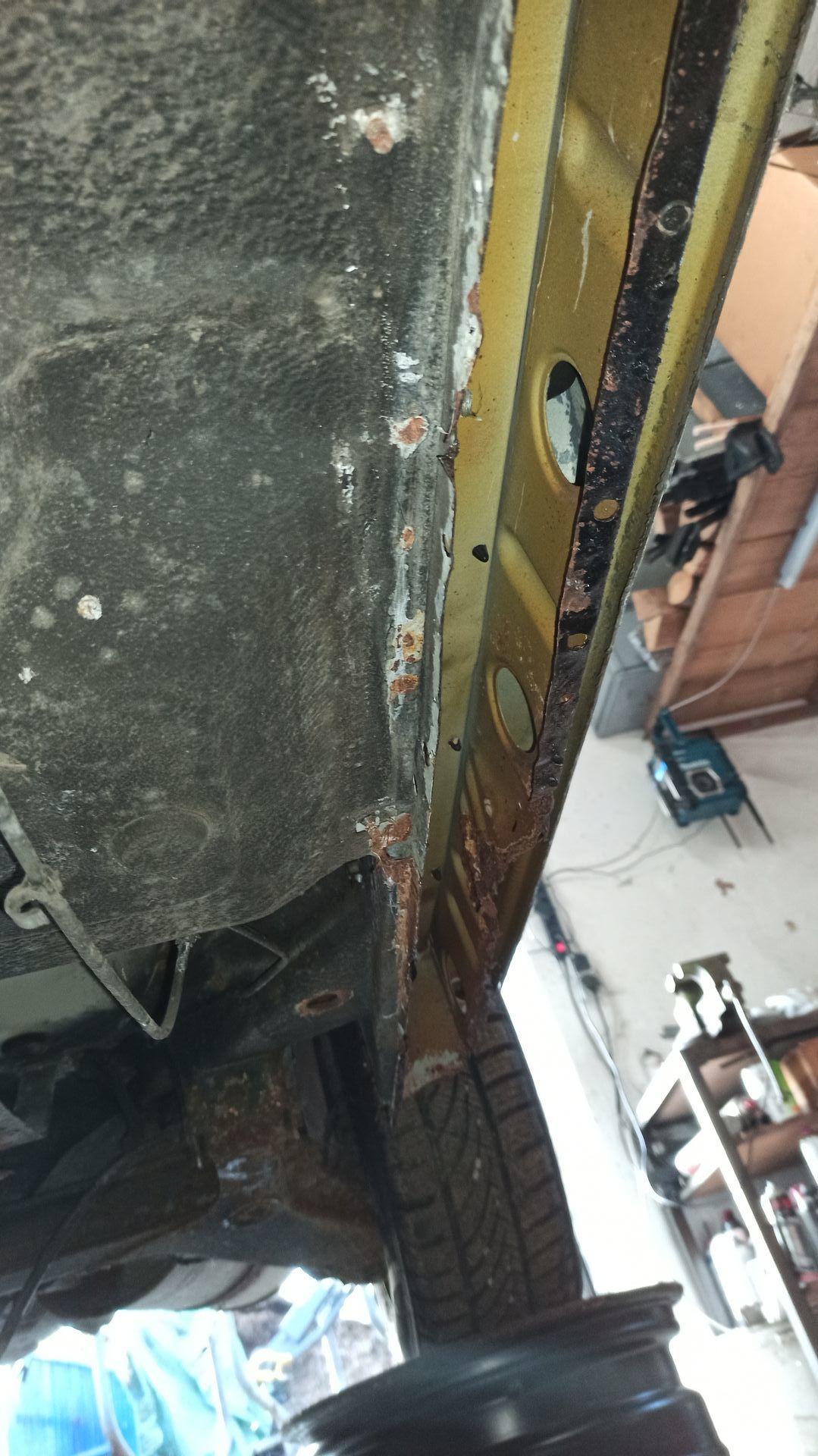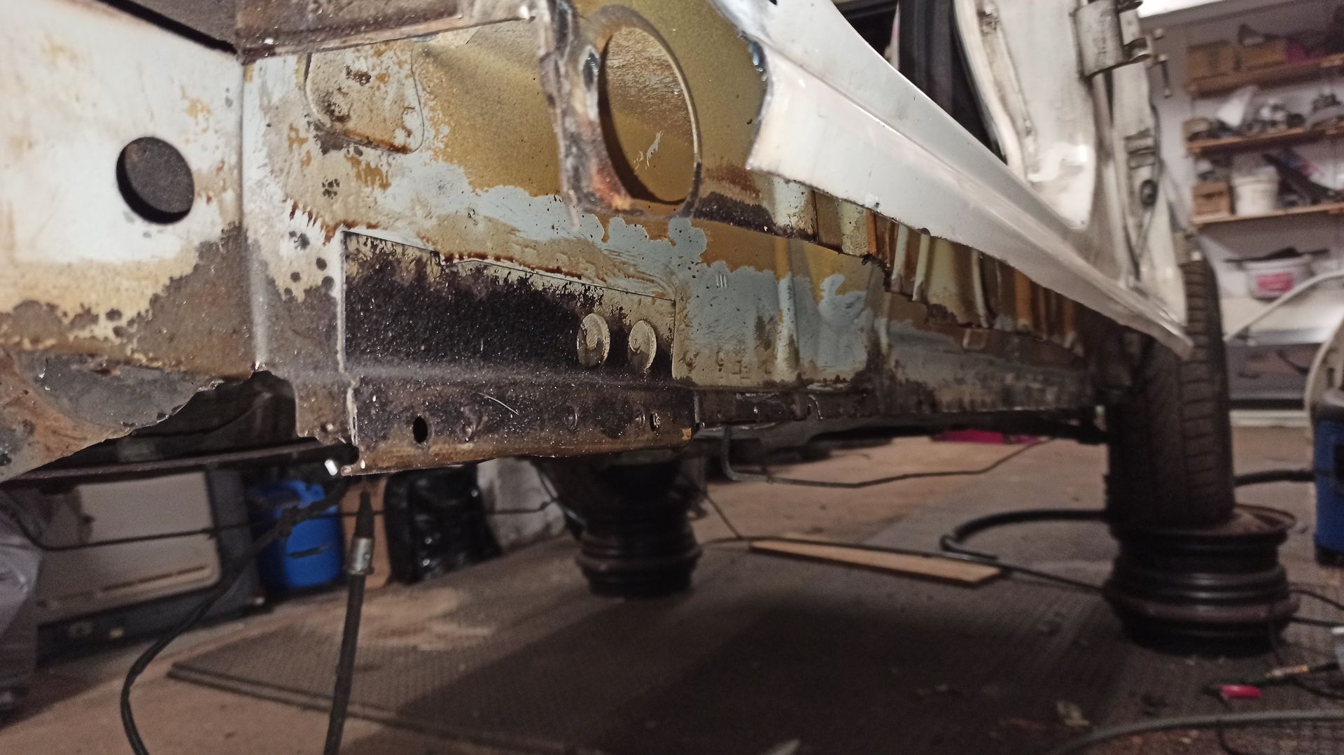 Sodala, mein Caravan ruht über den Winter demnächst gehts an dem Weißen 5türigen GL weiter der ehemals als Schlachter dienen sollte. Gekauft habe ich ihn vor gut 4 jahren weil ich die Höhenverstellbare Lenksäule für den Caravan brauchte.Für 99€ wechselte er den besitzer.Aber irgendwie wollte ich ihn dann doch nicht ganz schlachten und hab ihn dann stehen lassen. Haben uns dann entschieden ihn für meine Freundin fit zu machen da sie auch standesgemäß einen Kadett braucht. Nun soll es erstmal der Karosse an den kragen gehen. Ab werk ist es ein polarweißer 88er C16LZ Automatik mit dunkelbrauner Ausstattung. Bestandsaufnahme ist erstmal arg durchgerostet an den typischen stellen wie Schweller,Innenschweller, Radläufe, Innenradläufe und endspitzen. Die Technik ist am ende. Der rest ist gut in schuss, Querlenkeraufnahmen sind fest mit Leichten Rostansatz an den Falzen.