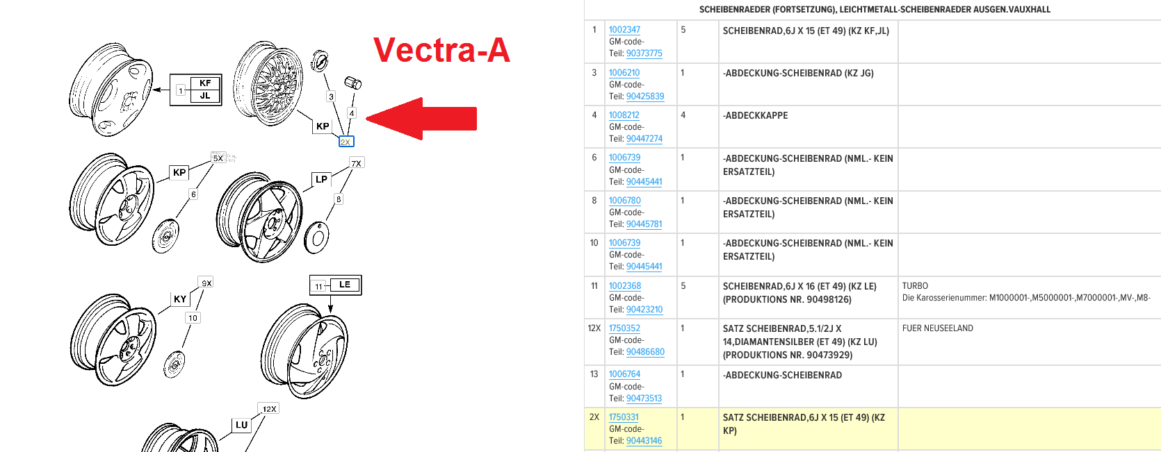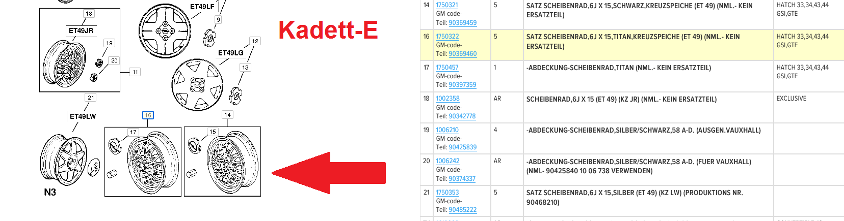 Die Kadett Felgen haben hier einen umlaufenden Rand.