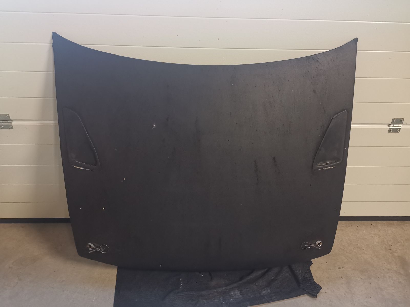 Motorhaube mit bösem blick und haubenhaltern