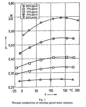 Tatsächlich verringert der Glykolanteil sowohl die Wärmekapazität C als auch die Wärmeleitfähigkeit λ des Kühlmittels, die Kühlung verschlechtert sich bis zur Gefahr der Überhitzung des Motors. Also bitte nie mehr als 50 Prozent Frostschutzmittel verwenden.