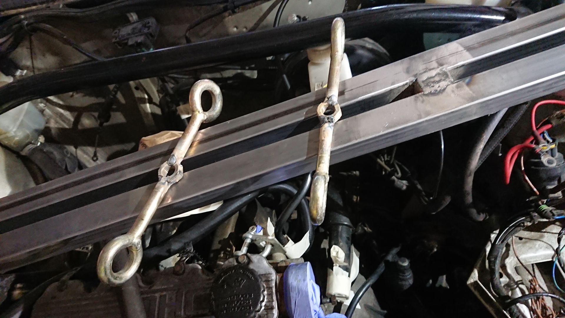 #169 Alles anzeigenDie hätte ich anders gebaut, zum einen kannst die nicht übers Rechtecksohr drehen, da stören die Ösen, ich hätte da ein U-Eisen genommen und in dem U eine Mutter verschweißt, somit muss die Schweißung nichts halten, da reicht es dann die Mutter zu heften.