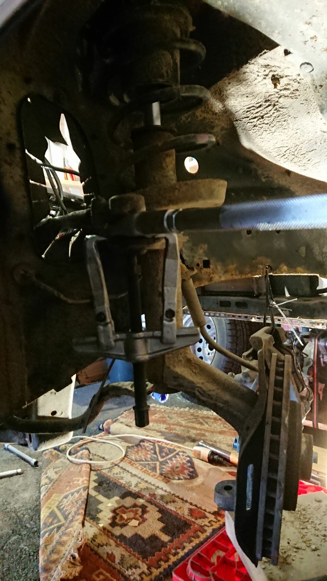 Dann war ich gut dabei und habe Federbeine rausgeholt. Ich weiss nicht was falsch, vielleicht weil es kalt ist aber die Spurstangenkopf war ein harter Kampf.