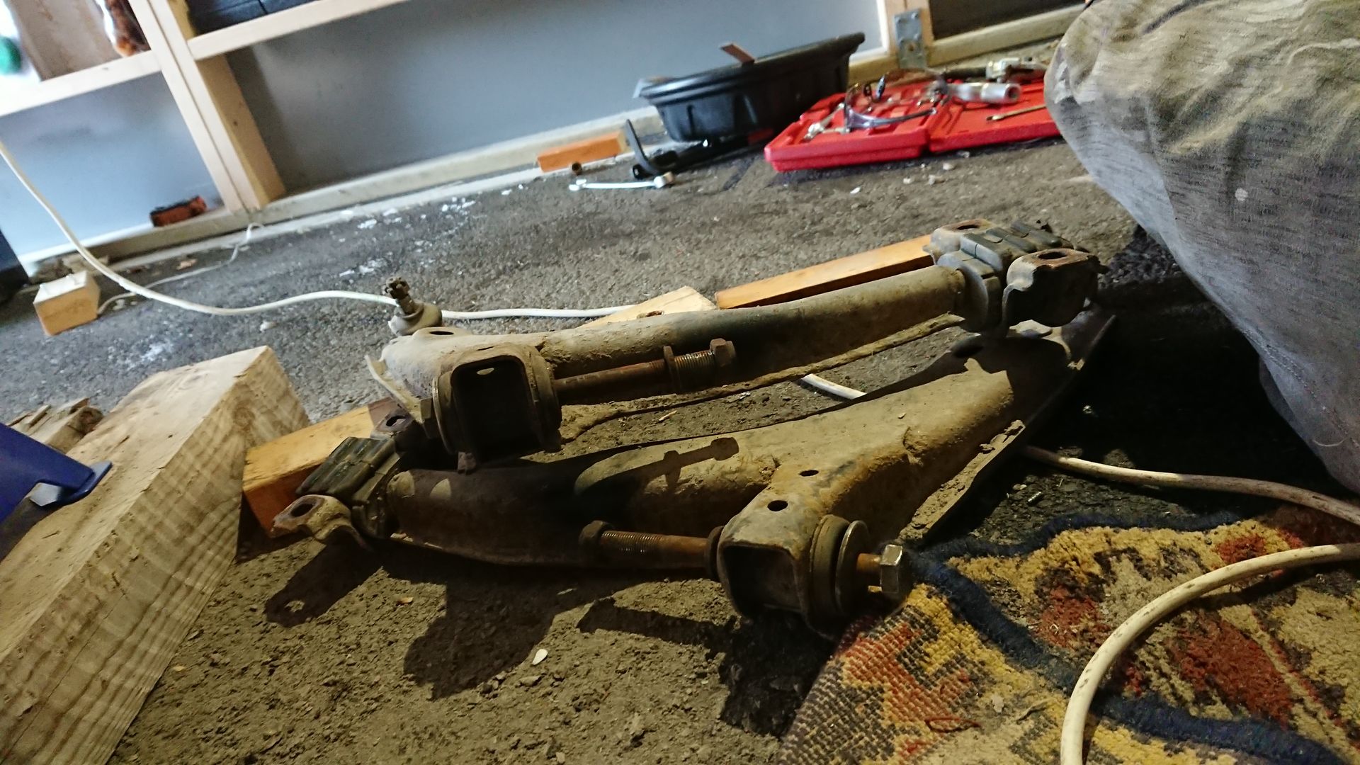 Querlenker raus gebaut und dann noch unter das jetzt geraumige Kadett gelegen und überlegt wie am besten die Lehre baue um das Ersatzteil gut einzubauen.
