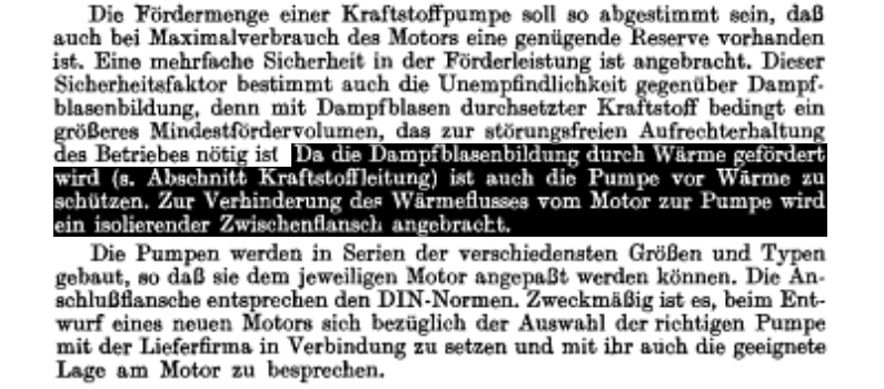 Eine Dampfblasenbildung lässt sich in einem heißen Umfeld nur ausschließen, so lange der Kraftstoff unter Druck und im Fluß bleibt.