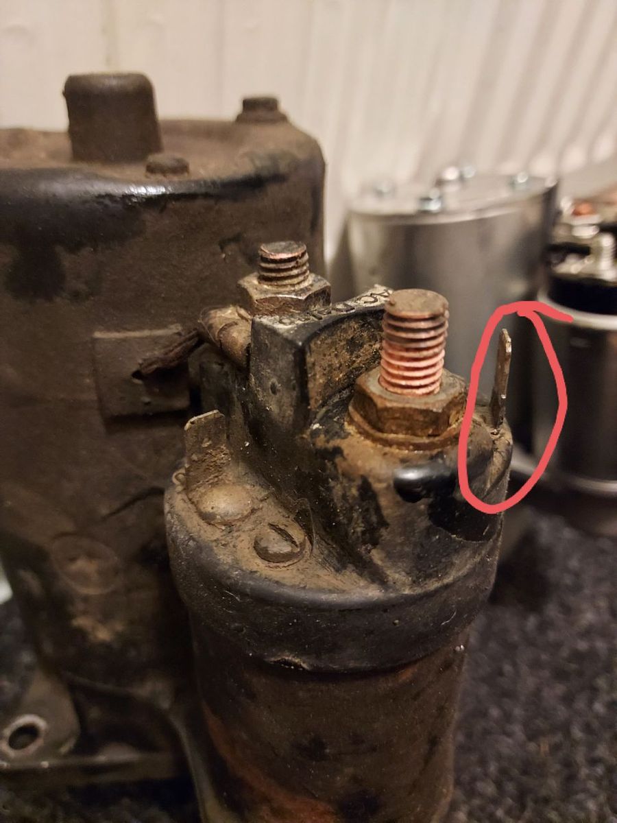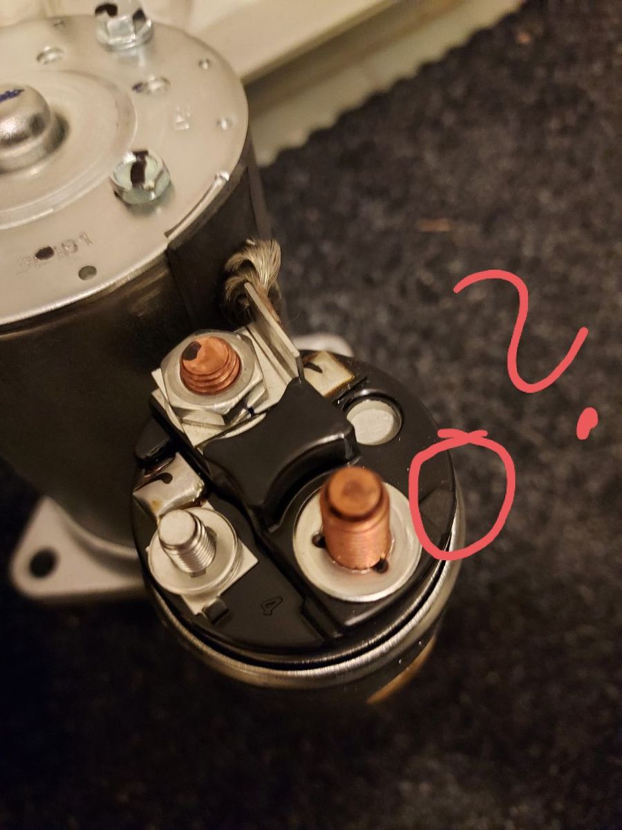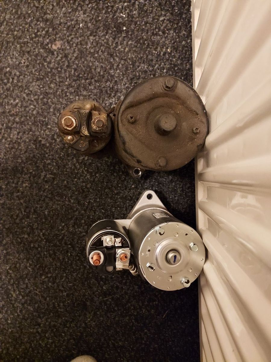 #18 Habe jetzt den Anlasser tauschen wollen und hier beim regionalen Ersatzteilversorger einen bestellt. Der kam heute an. Nun sieht der neue Anlasser vollkommen anders aus (30-40 Jahre Unterschied, verstehe ich), allerdings fehlt am Magnetschalter ein Pin-Anschluss (markiert rot). Es soll aber laut mehrmaliger Überprüfung und Nachfrage des Ersatzteilversorgers der passende Anlasser sein...