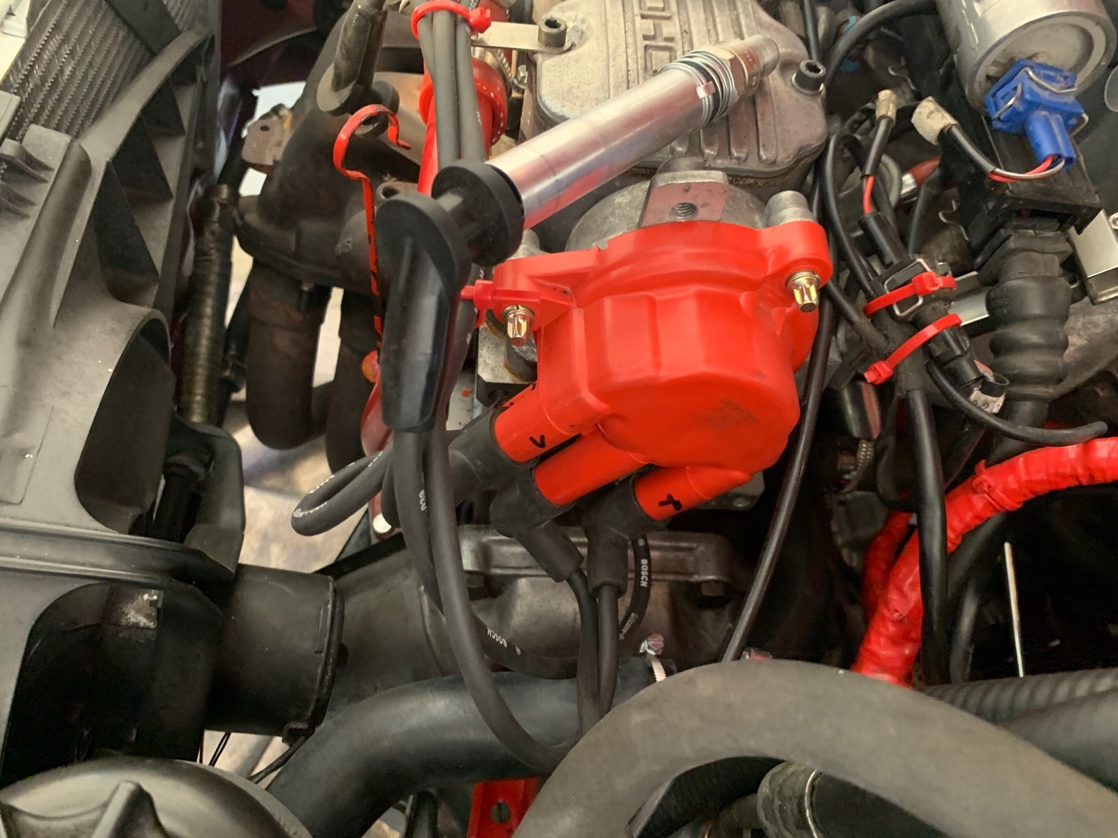 An der Spule kommen 12 Volt an und am Ende des ersten Zündkabel zum Verteiler auch wenn die Zündung eingeschaltet ist.