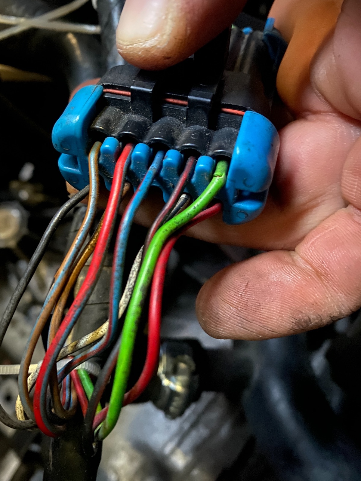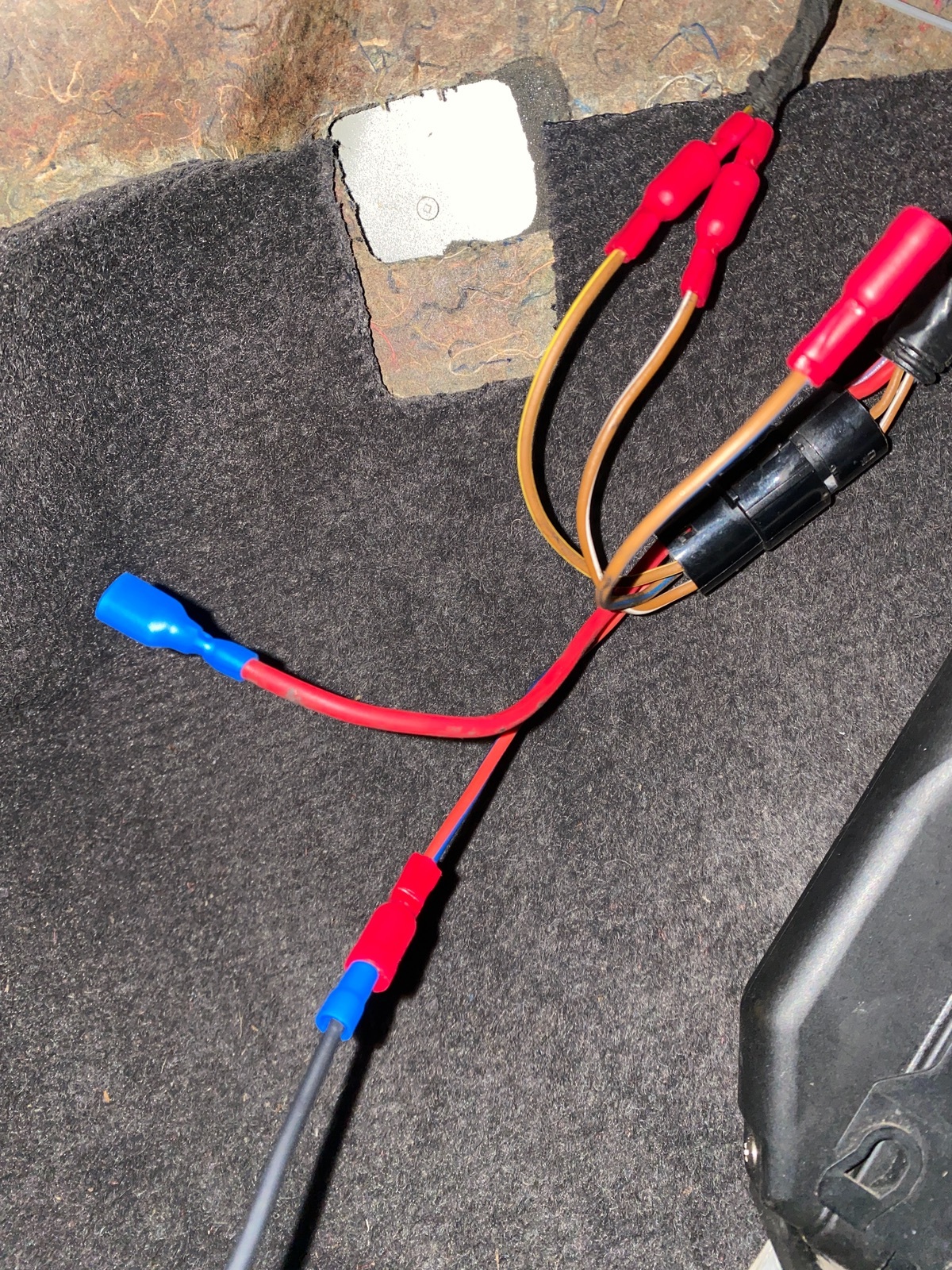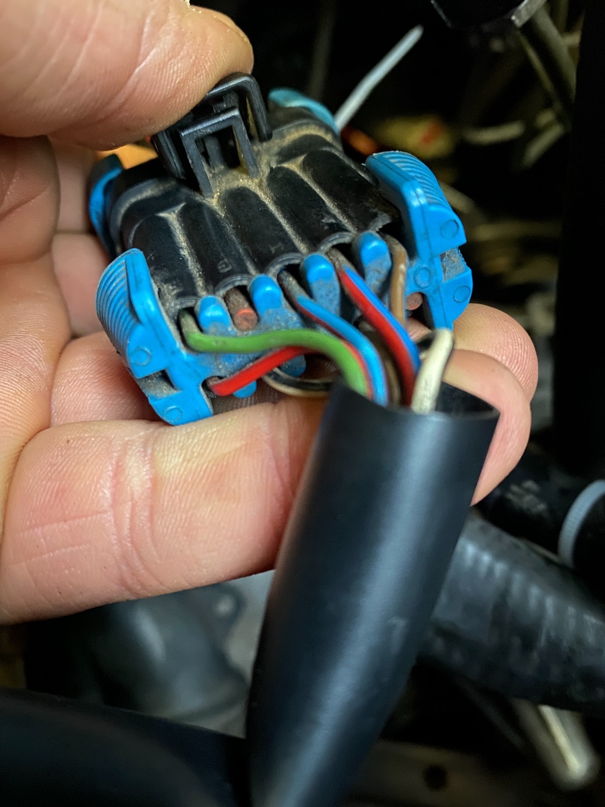 Von dem Stecker vom innenraumkabelbaum sind nun noch Rot und Braunblau übrig. Von dem Stecker hab ich ein (bitte nicht irritieren lassen) Schwarzes kabel zum anlasserkabelbaum gelegt und dort verbunden.