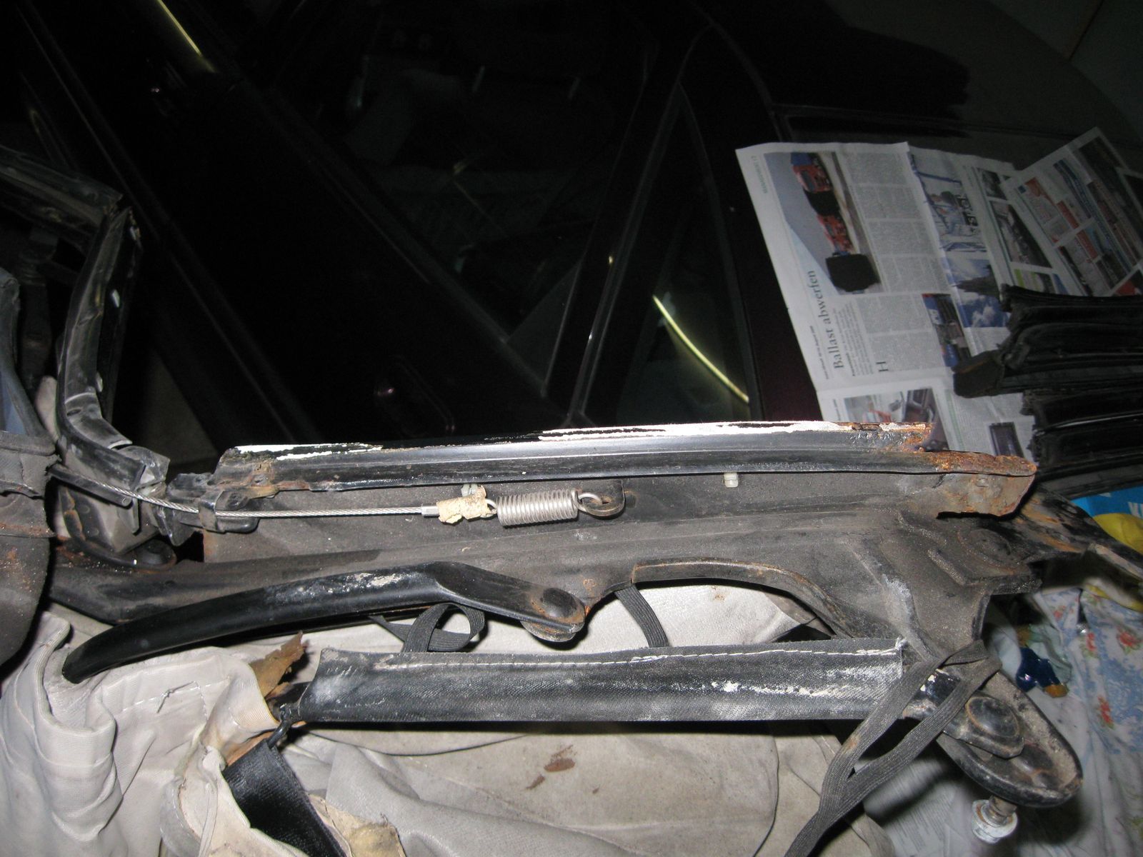 Auf alle Fälle solltest du darauf achten im vorderen Bereich das Verdeck so zu spannen, dass die vordere Kante erstmal ca. 90° nach unten gebogen ist. Die zieht sich dann beim Spannen des Heckbereichs hoch und wird "gerade". Verklebst du das von Anfang an gerade und vernietest das dann auch so, wird die Kante später bei geschlossenem Verdeck immer nach oben stehen.