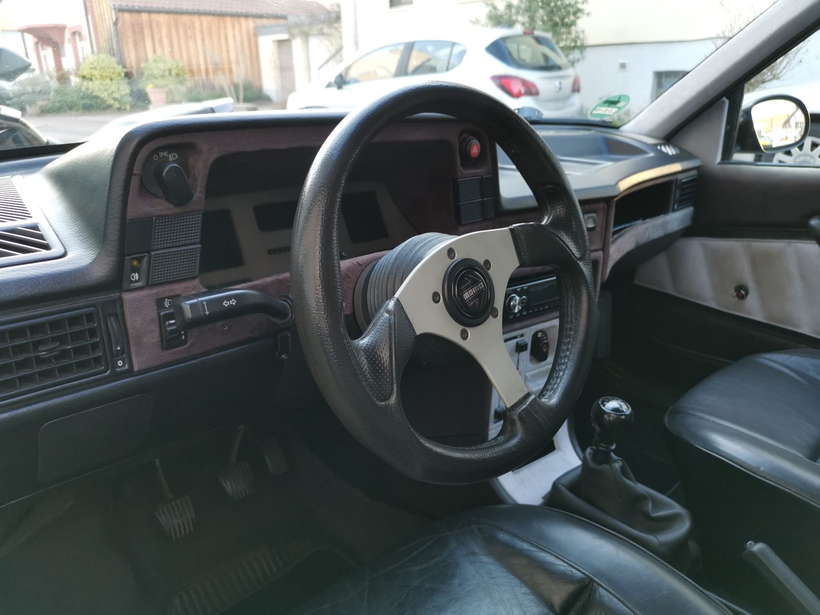 - Aufgrund der vorhandenen Servolenkung, war ein schickes 32er Momo Lenkrad ein Muss. Das Lenkrad sieht heute noch aus wie neu.