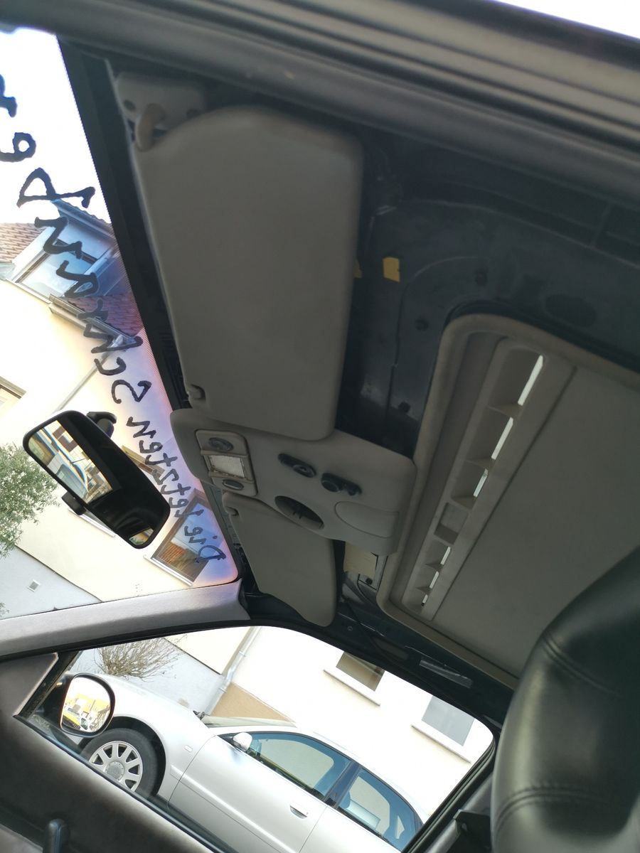 - Der Dachhimmel fehlt, da wir ihn beim Umbau für das Schiebedach raus machen mussten und anpassen wollten, damit die Elektrik eingepasst werden kann. Dabei ist er leider gebrochen.