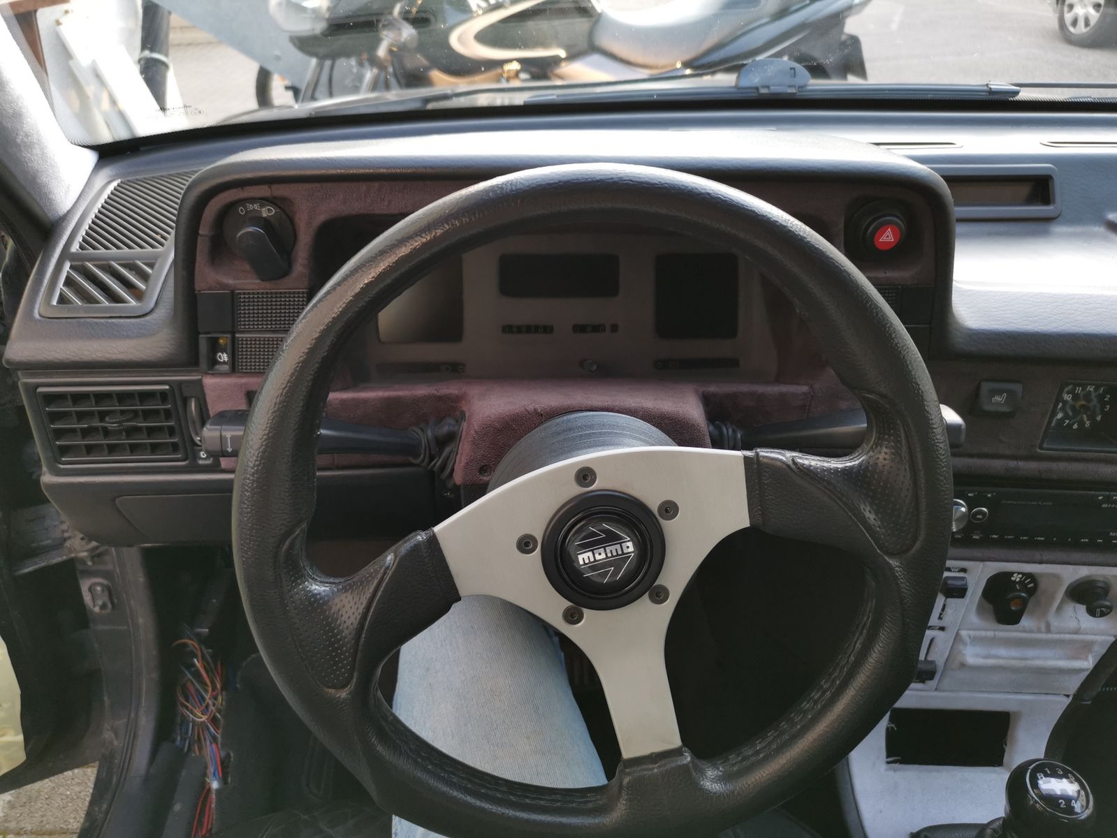 - Aufgrund der vorhandenen Servolenkung, war ein schickes 32er Momo Lenkrad ein Muss. Das Lenkrad sieht heute noch aus wie neu.