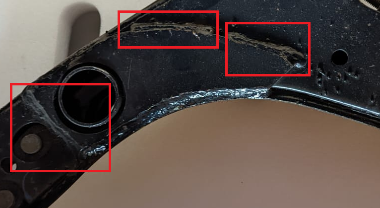 Eindeutig zu erkennen, das es sich hier um keine maschinelle Schweißnaht handelt, sondern um eine Handschweißung: