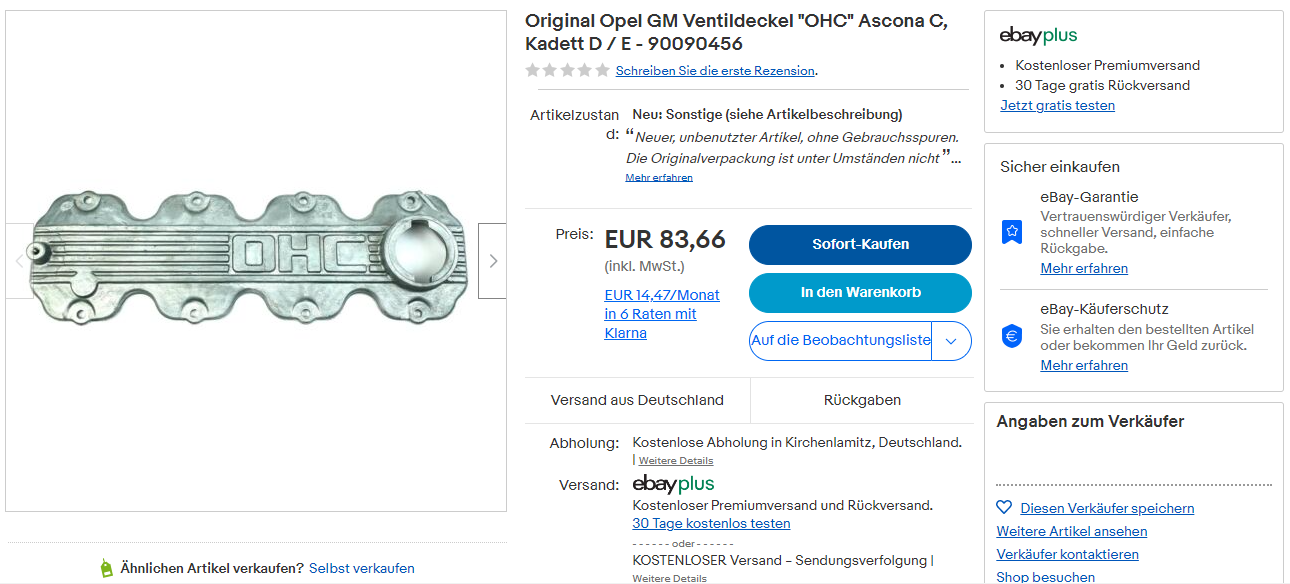 #40 Diese unverschämten Preise bei eBäh kotzen mich langsam an, in nicht mal 2 Jahren über das fünffache für einen lumpigen Ventildeckel verlangen zu wollen, für den ich vor anderthalb Jahren noch 16,- EUR bei Opel an der Theke gezahlt habe... ohne weitere Worte.