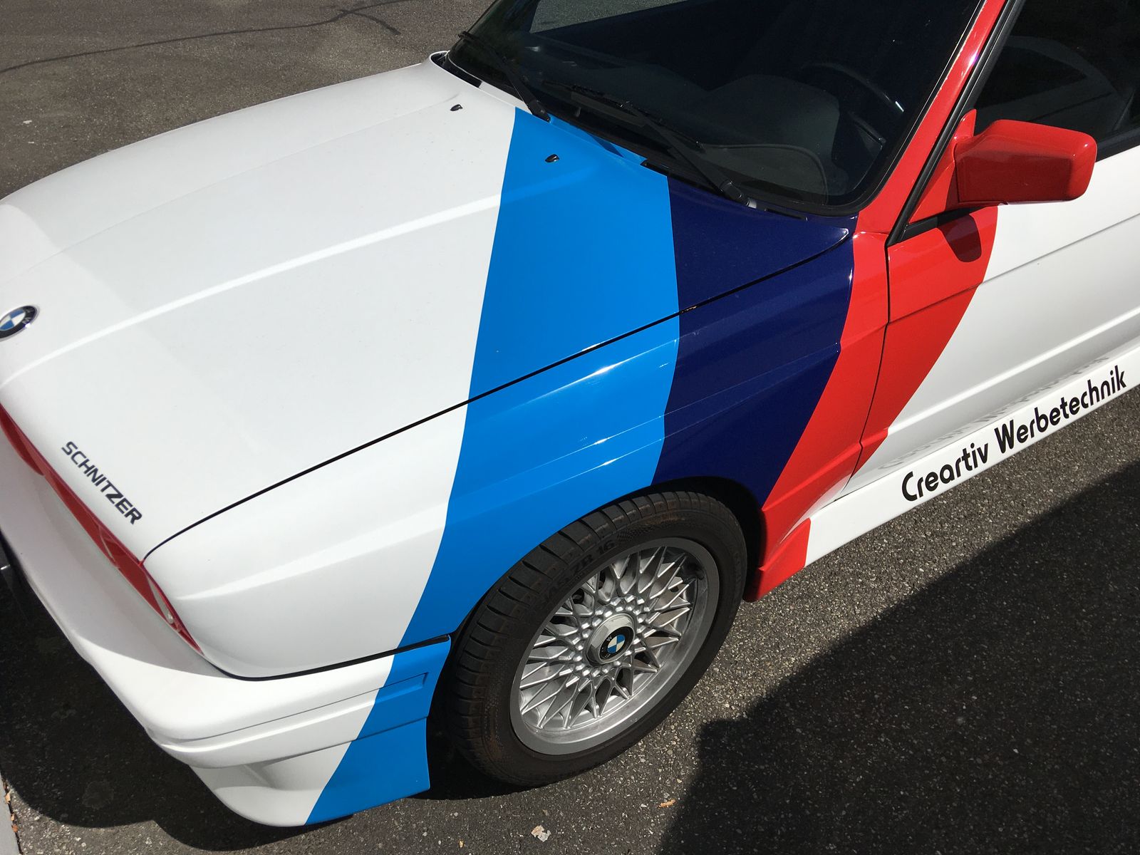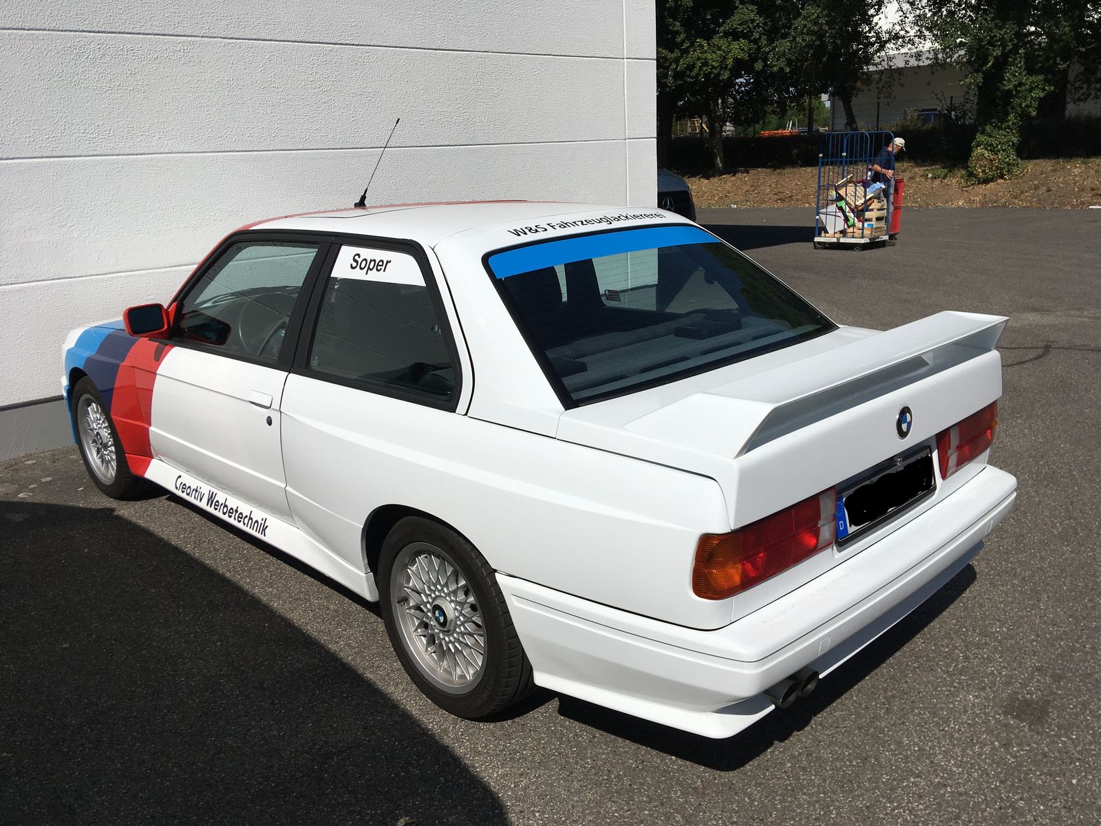 Da ich gestern bei meinem Bekannten war, mal ein paar Fotos von seinem M3, sehr schönes Teil aus erster Hand, wurde foliert im Design der damaligen DTM-Zeit, hier Steve Soper: