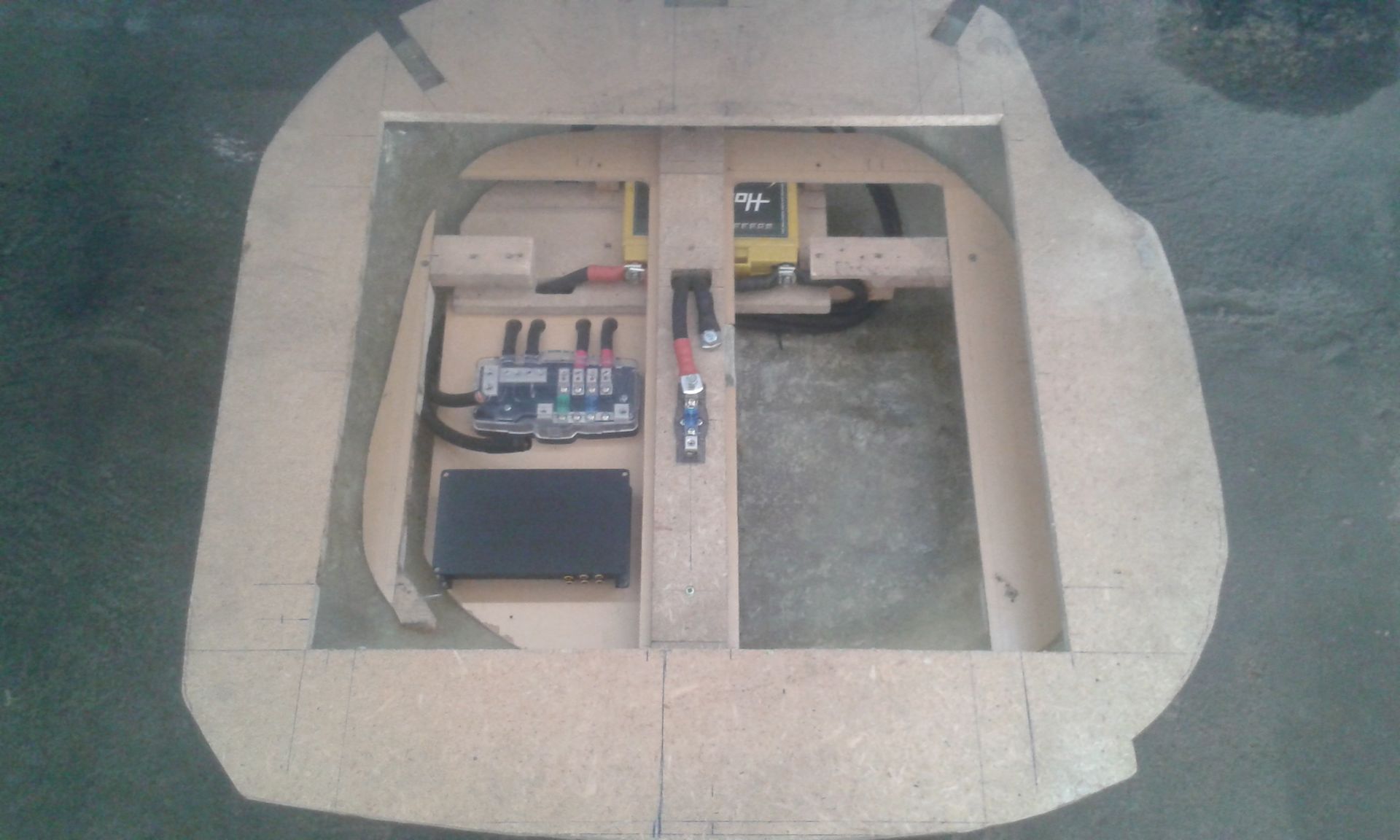 Danach kam eine Holzplatte oben drauf, welche dann mit Harz verklebt wurde.