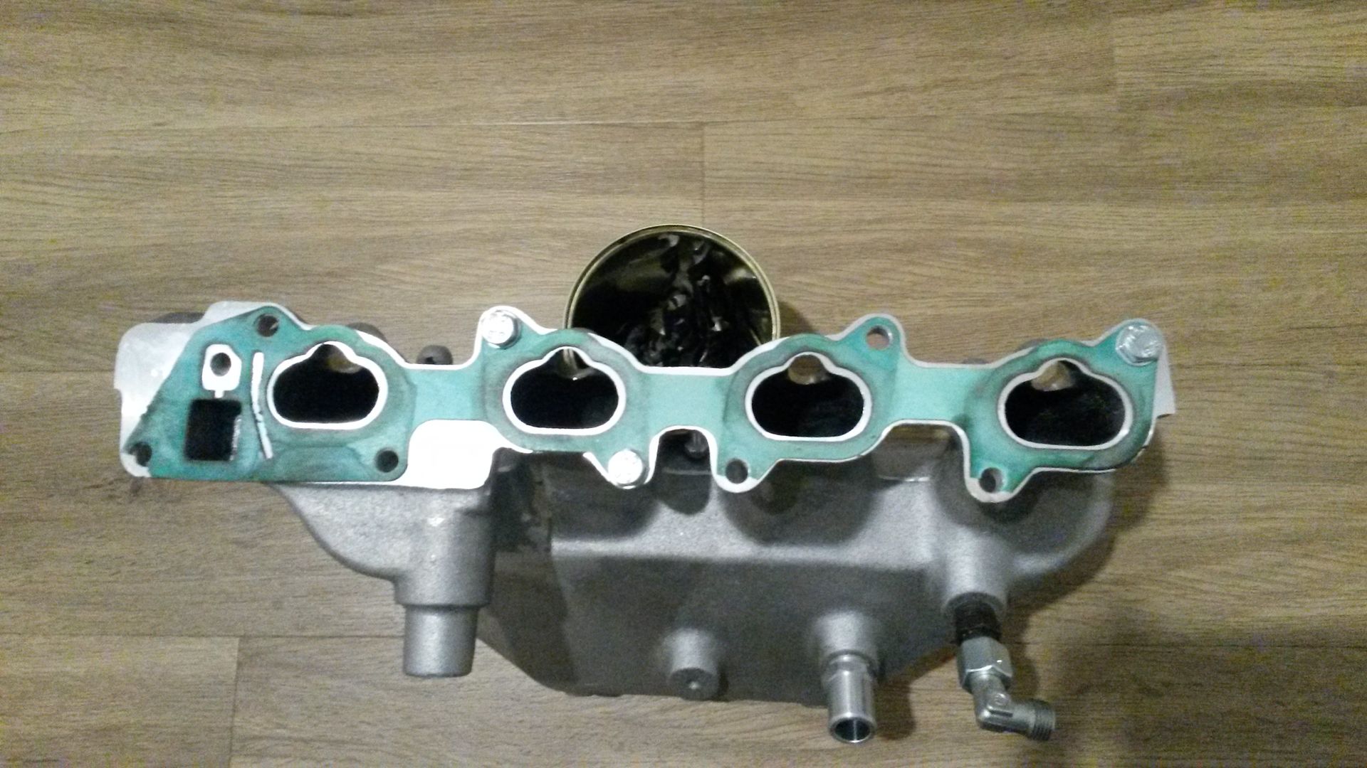 Die EDS Brücke mußte zuerst an meinen Motor angepaßt werden. Dazu hatte ich alle Kanäle auf den XXL Kopf vom Blank vergrößert. Die Dichtung zeigt wie viel an der EDS Brücke nachgearbeitet werden mußte.