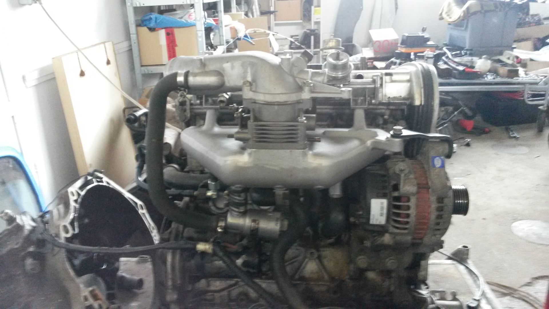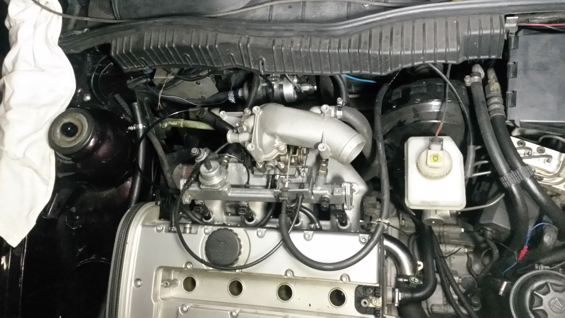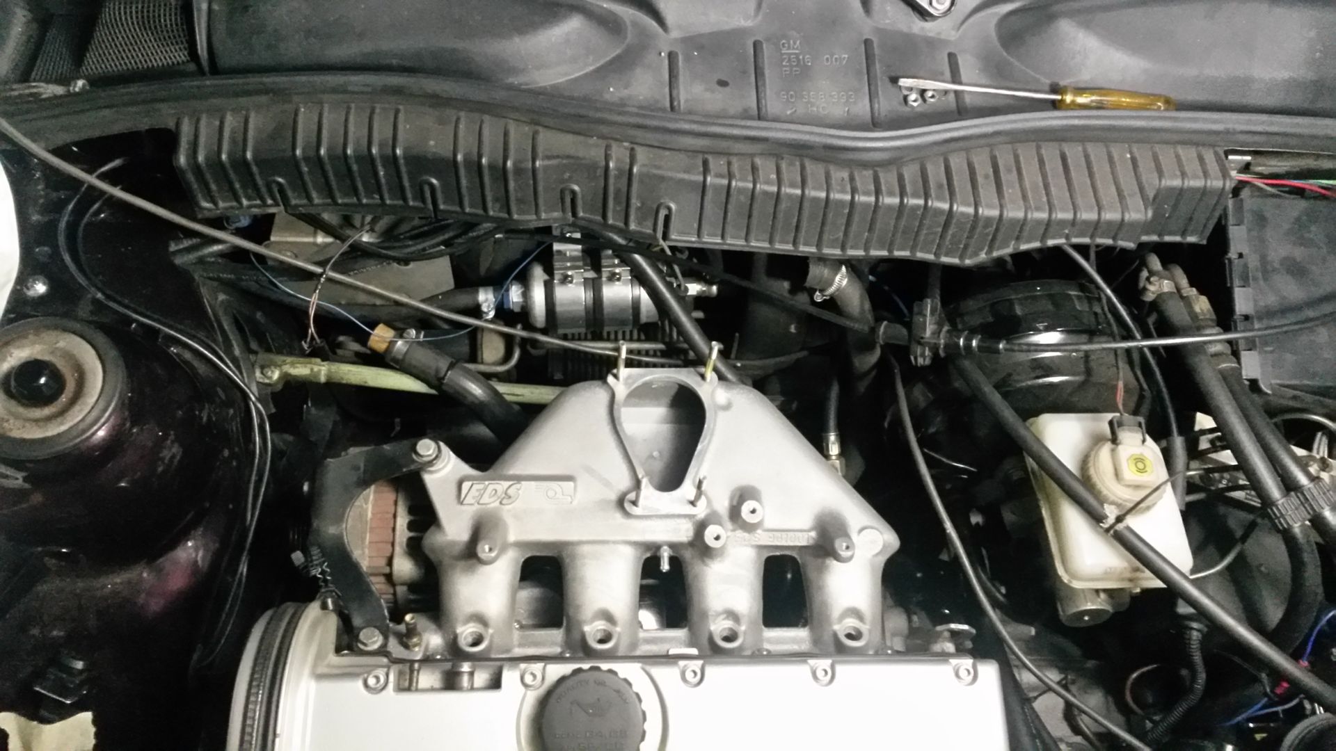 Für die Probemontage der Ansaugbrücke mußte ein XE herhalten. So konnte ich alle Anschlüsse überprüfen, den Platz zur 100A LiMa prüfen, LLR und Schläuche positionieren.