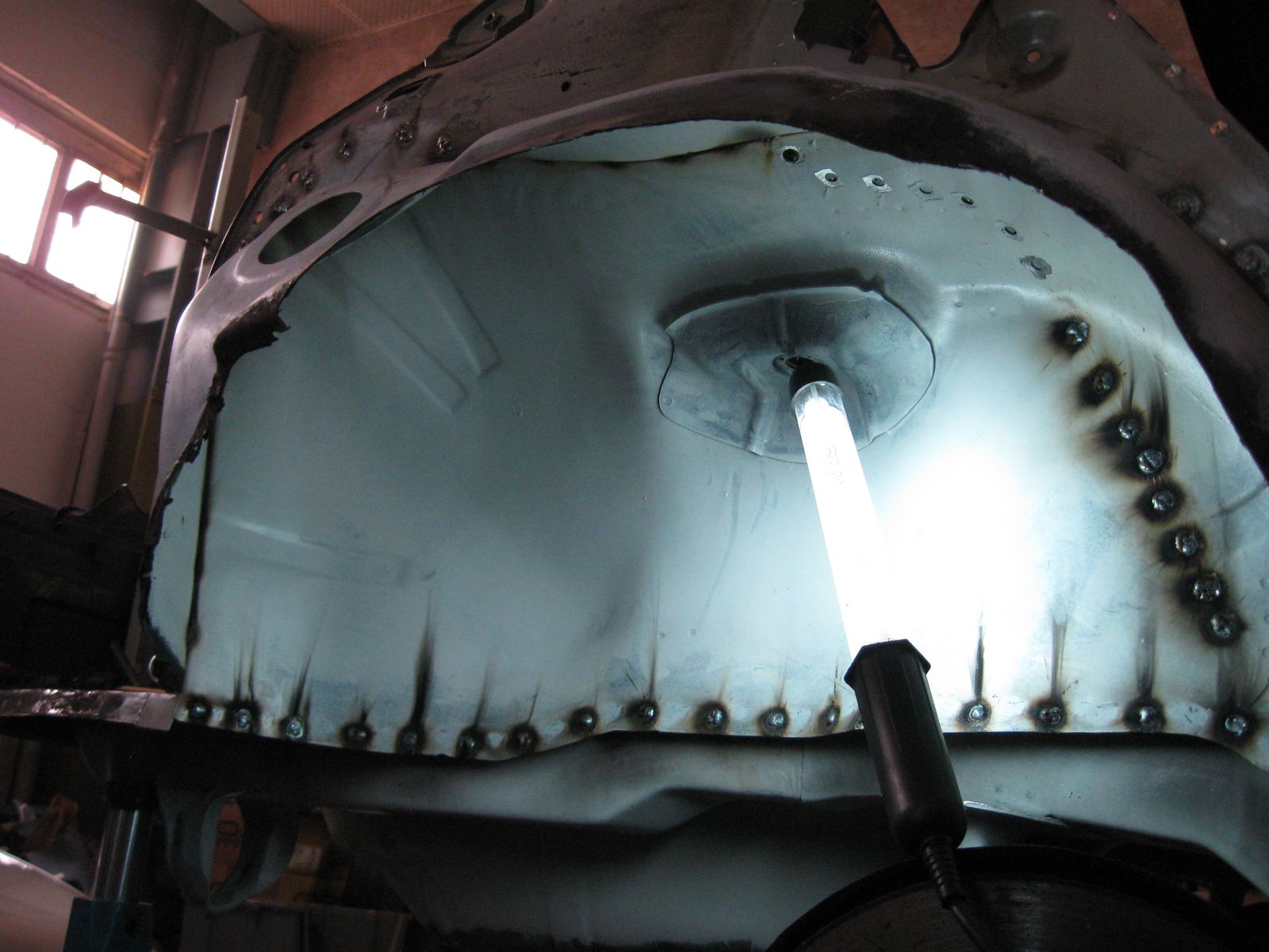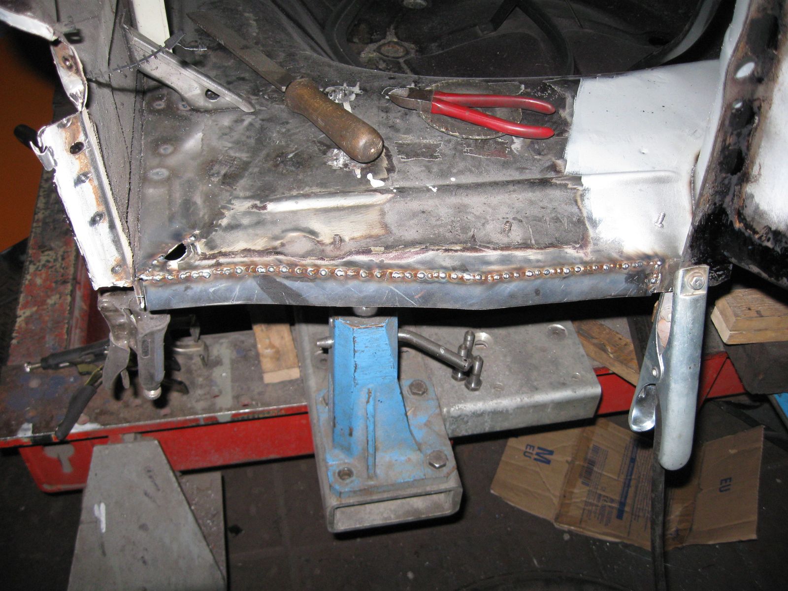 Wieder wurde der Einstieg und die Seitenwand verschweißt und von innen grundiert.