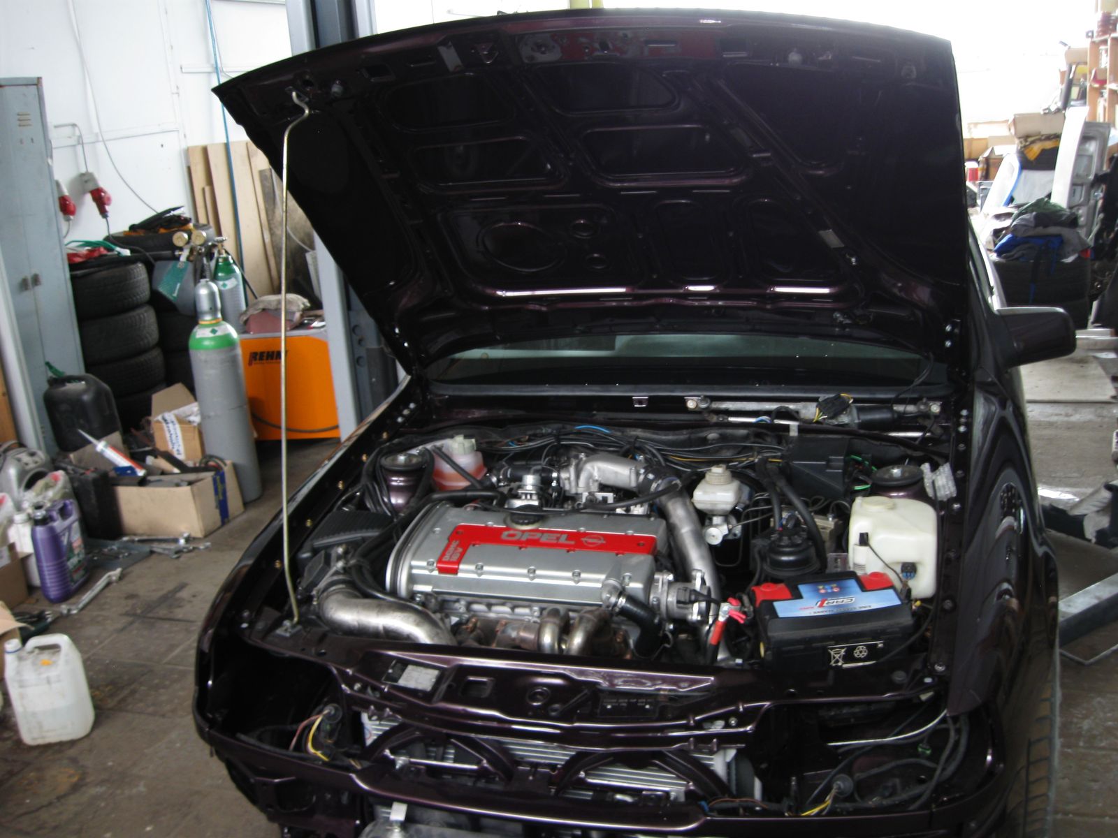 Für die Probemontage der Ansaugbrücke mußte ein XE herhalten. So konnte ich alle Anschlüsse überprüfen, den Platz zur 100A LiMa prüfen, LLR und Schläuche positionieren.