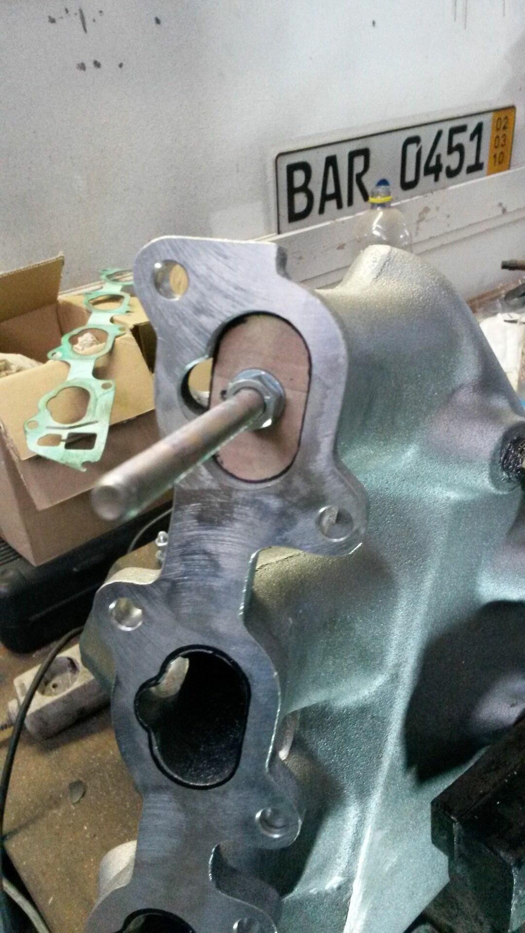 Die EDS Brücke mußte zuerst an meinen Motor angepaßt werden. Dazu hatte ich alle Kanäle auf den XXL Kopf vom Blank vergrößert. Die Dichtung zeigt wie viel an der EDS Brücke nachgearbeitet werden mußte.