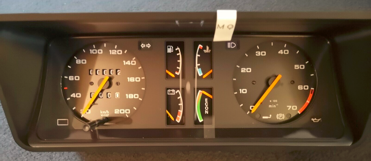 Habe noch zwei vollständige Tachoeinheiten im Lager liegen, beide sind funktionstüchtig und geprüft, eine von diesen habe ich selbst vor 22 Jahren aus einem Schlachtfahrzeug mit 107´tkm Laufleistung ausgebaut; von dieser würde ich mich ggf. trennen.