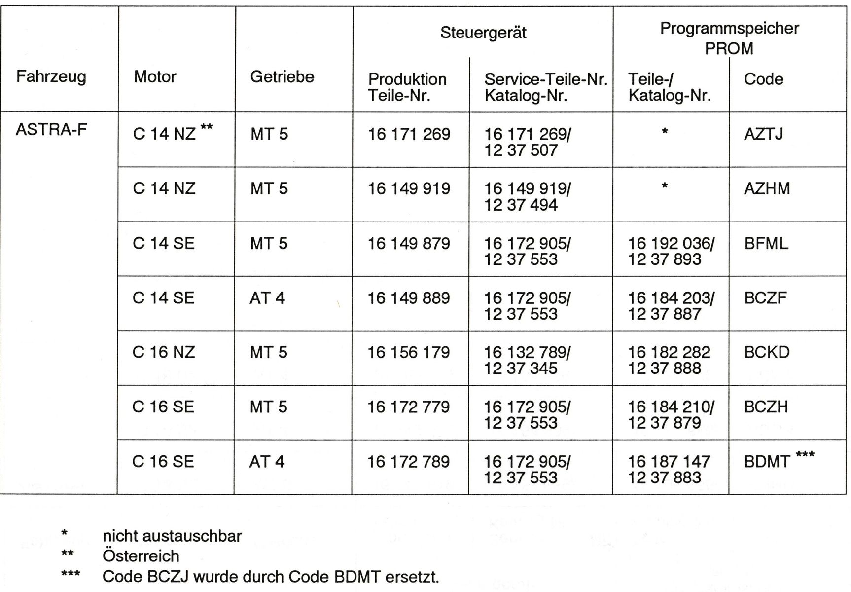 für den Kadett-E mit C13N gibt es fünf verschiedene Programmspeicher, wenn es dir hilft: