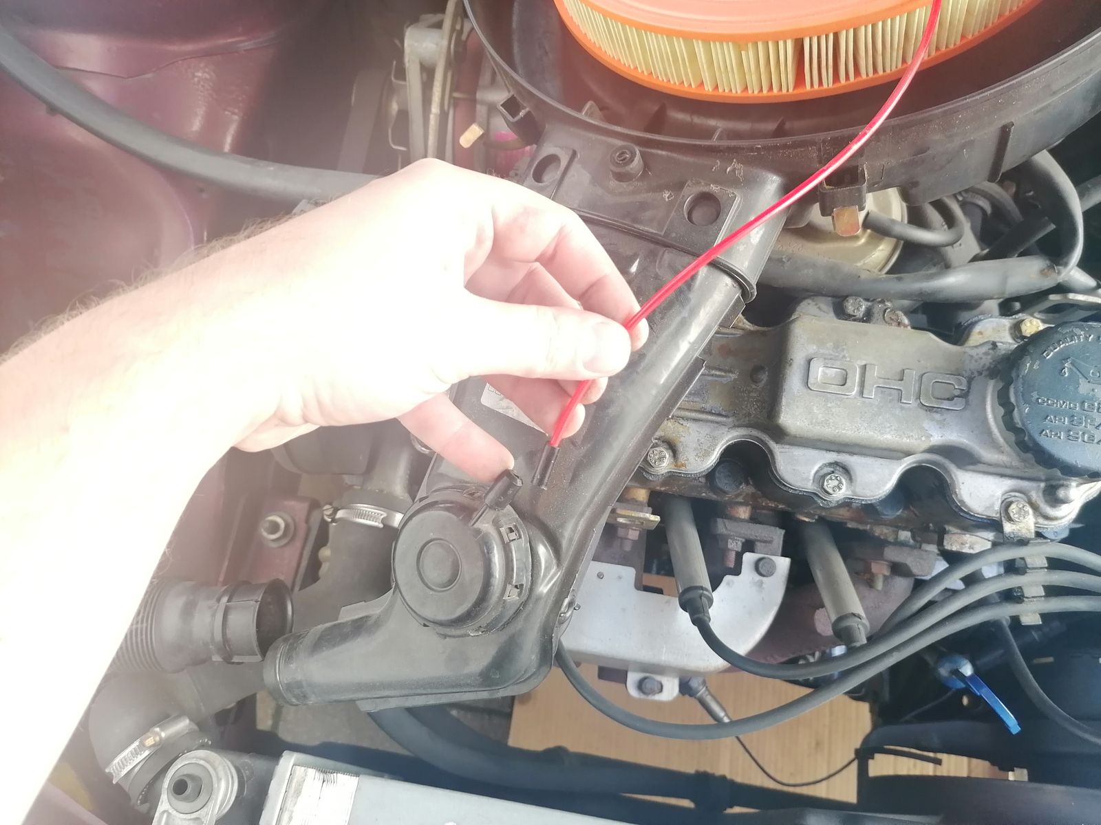 #2 Mit dem Schlauch wird über Unterdruck in dem Ansaugrohr eine Klappe verstellt, je nach Motortemperatur schaltet diese zwischen warmer Ansaugluft vom Krümmer, oder kalter Luft vom Scheinwerfer um.