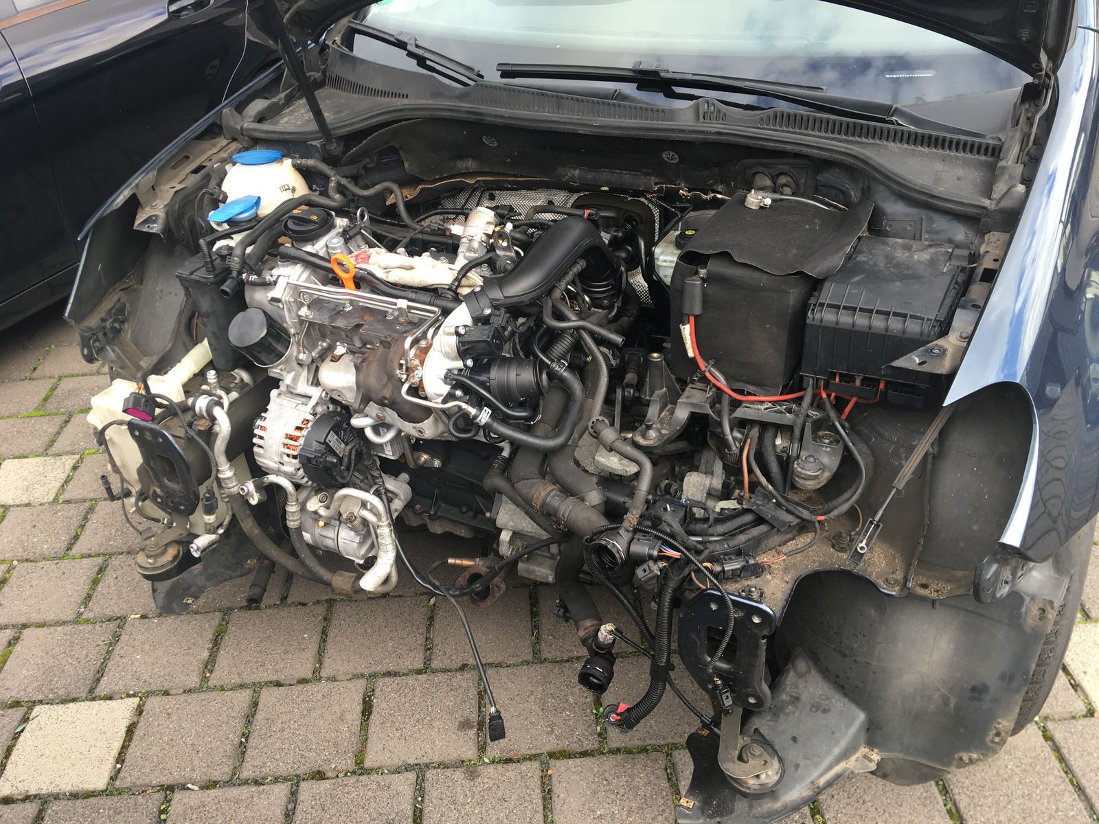 Gebrauchtmotor mit 60.000km eingepflanzt, Foto zeigt schon den neuen Motor im eingebauten Zustand.